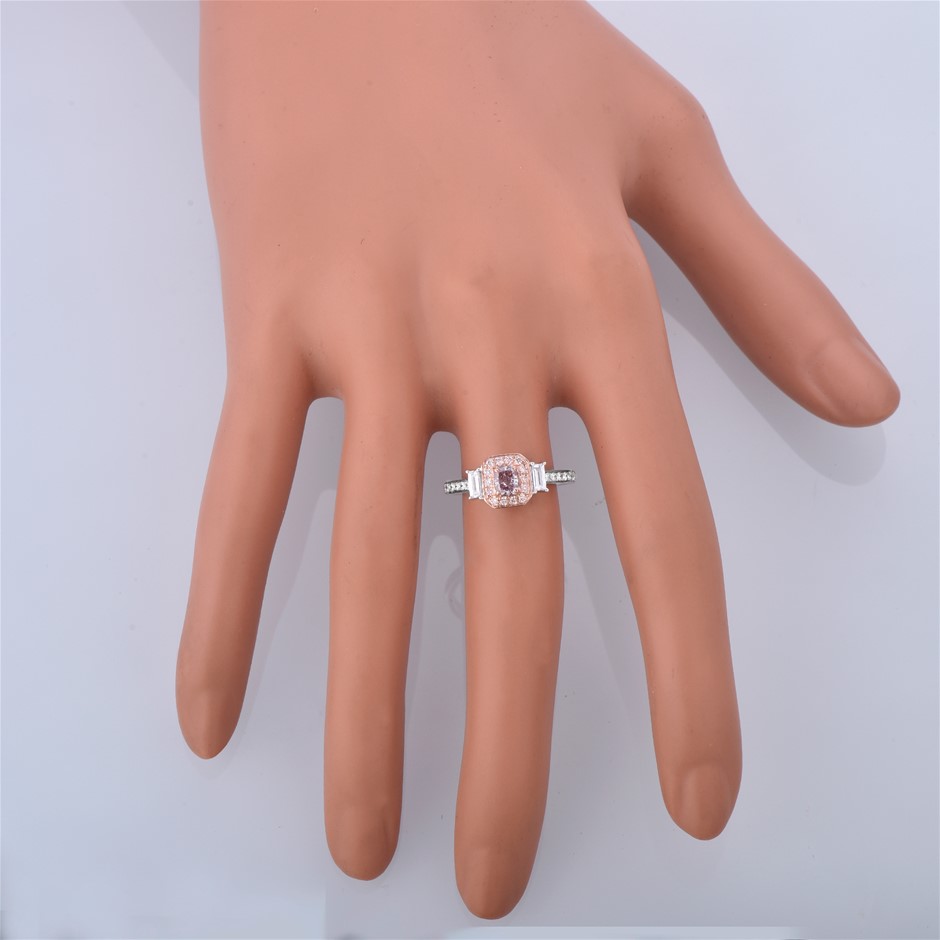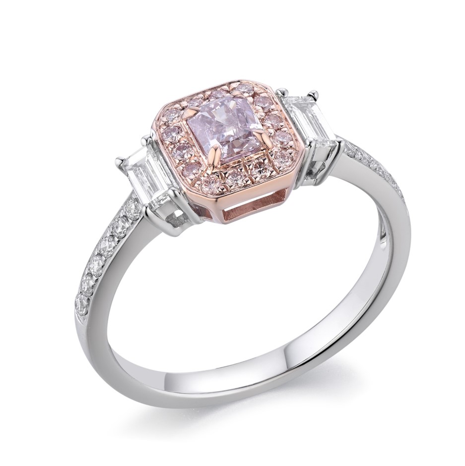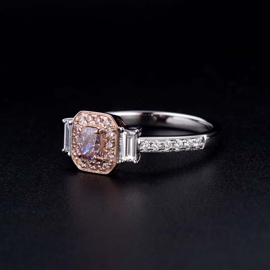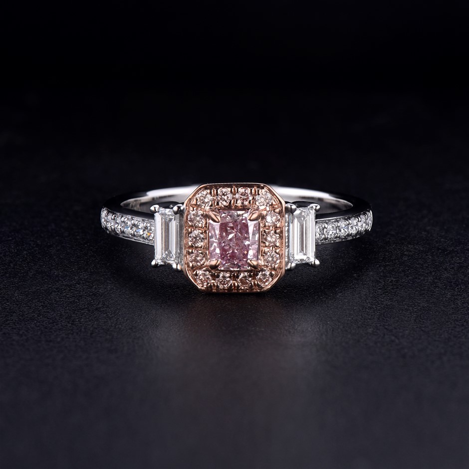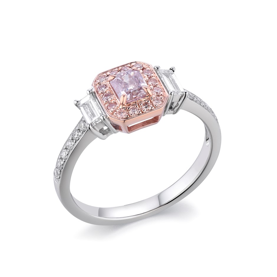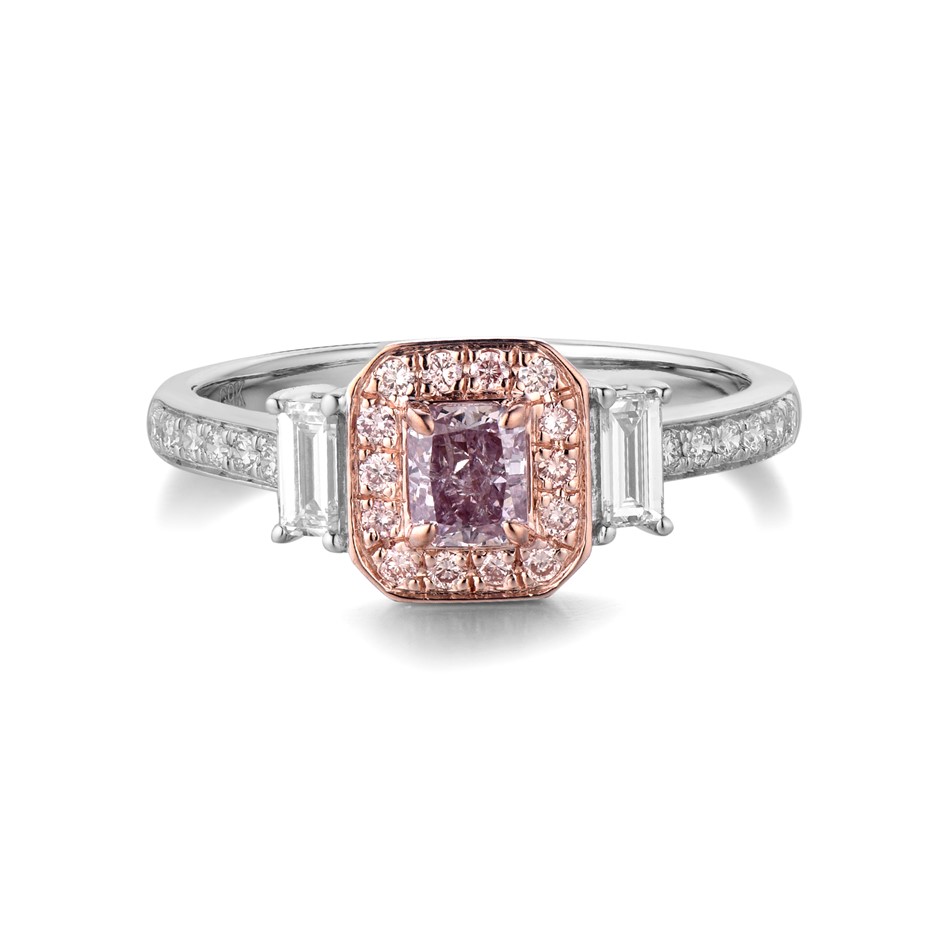 • Carat weight of the centre natural pink diamond: 0.38 carats.