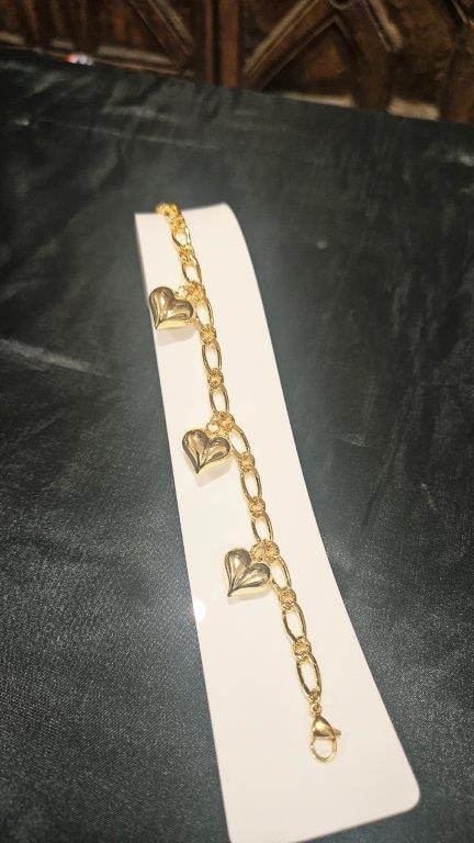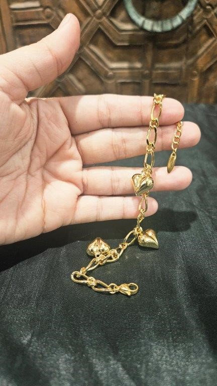 22k Italy Stamped Yellow Gold Filled Heart Bracelet Quality-18cm+Extra 5cm