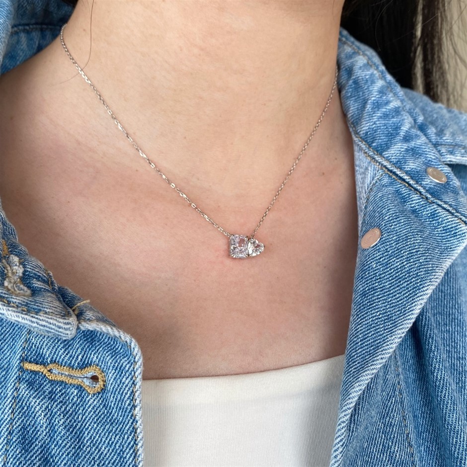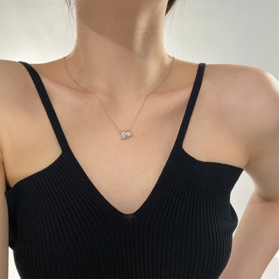 1.5ct 925 Sterling Silver Simulated Diamonds Rectangle Pendant Necklace