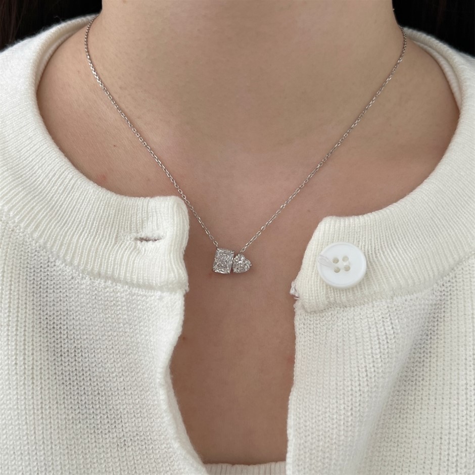 1.5ct 925 Sterling Silver Simulated Diamonds Rectangle Pendant Necklace