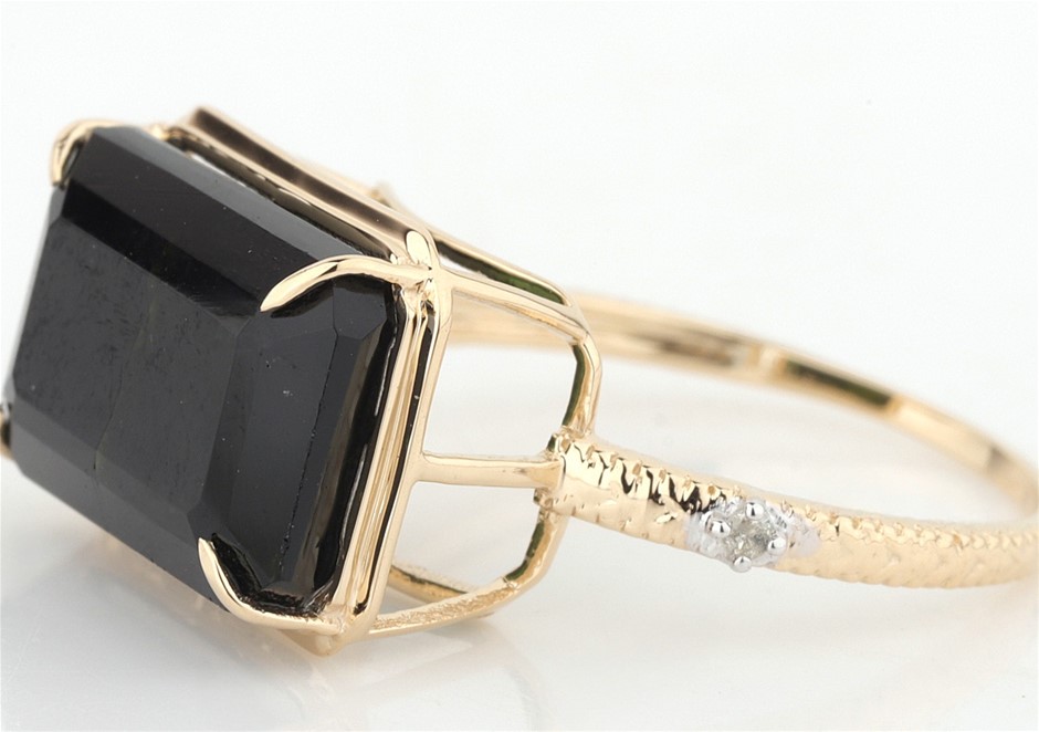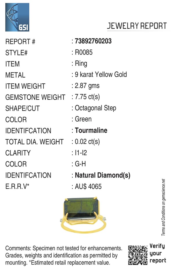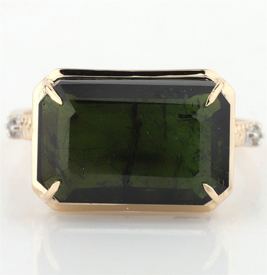 Yellow Gold Natural Tourmaline & Diamond Ring With Valuation