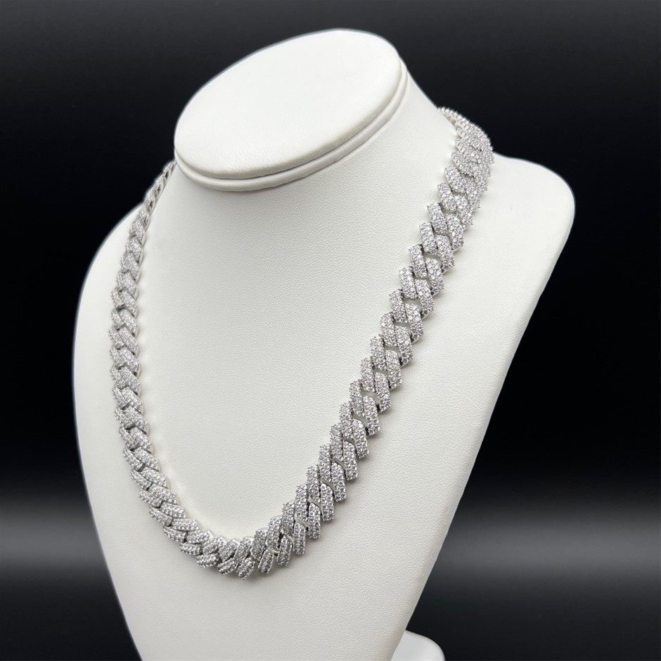 Opulent Galleria - 18K White-Filled Cuban Chain Necklace with Simulated Diamonds - 60.9cm