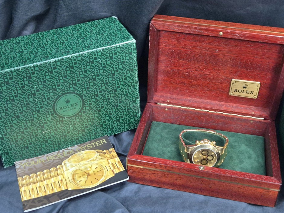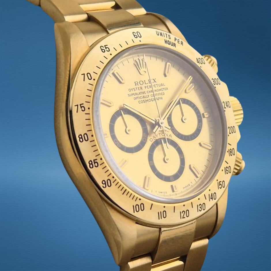 ROLEX DAYTONA 40MM 18K YELLOW GOLD 16528 AUTOMATIC CHAMPAGNE DIAL BXP & COA
