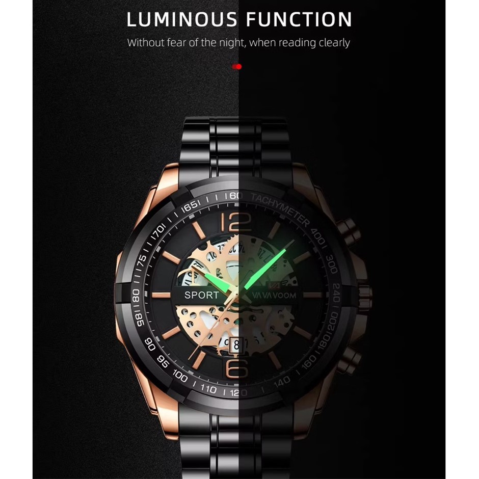 Designed for clarity in low-light conditions, the luminous hands and hour markers ensure easy readability day or night, adding both function and a bold visual edge.