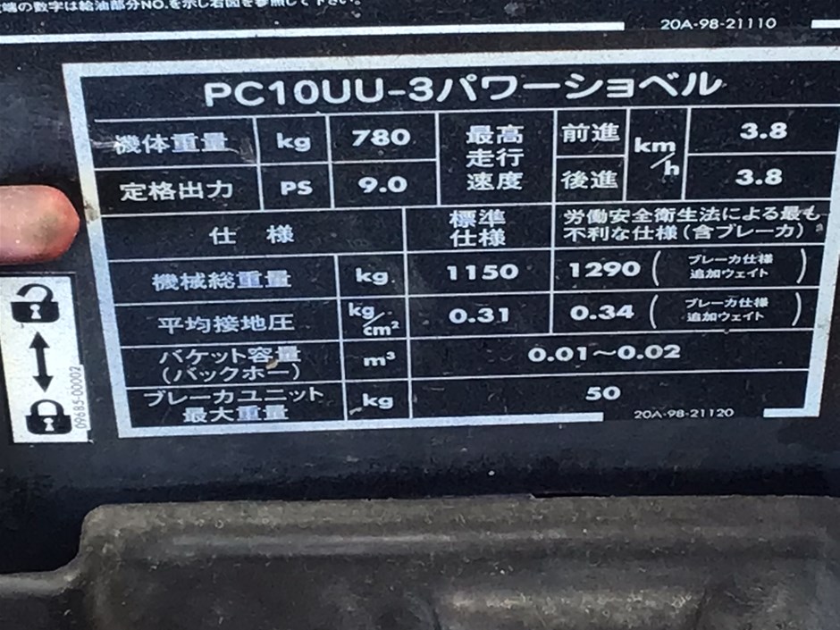 | Part of Sale | Unreserved 2004 Komatsu PC10UU-3 Mini Excavator | ||||||||||