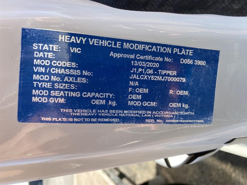 2020 Isuzu CXY 240-460 6 x 4 Tipper Truck