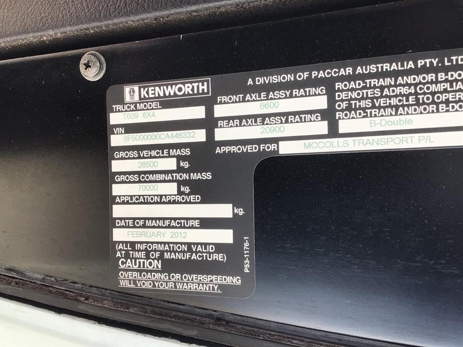 Part of Sale 2012 Kenworth T609 (6 x 4) Prime Mover Truck