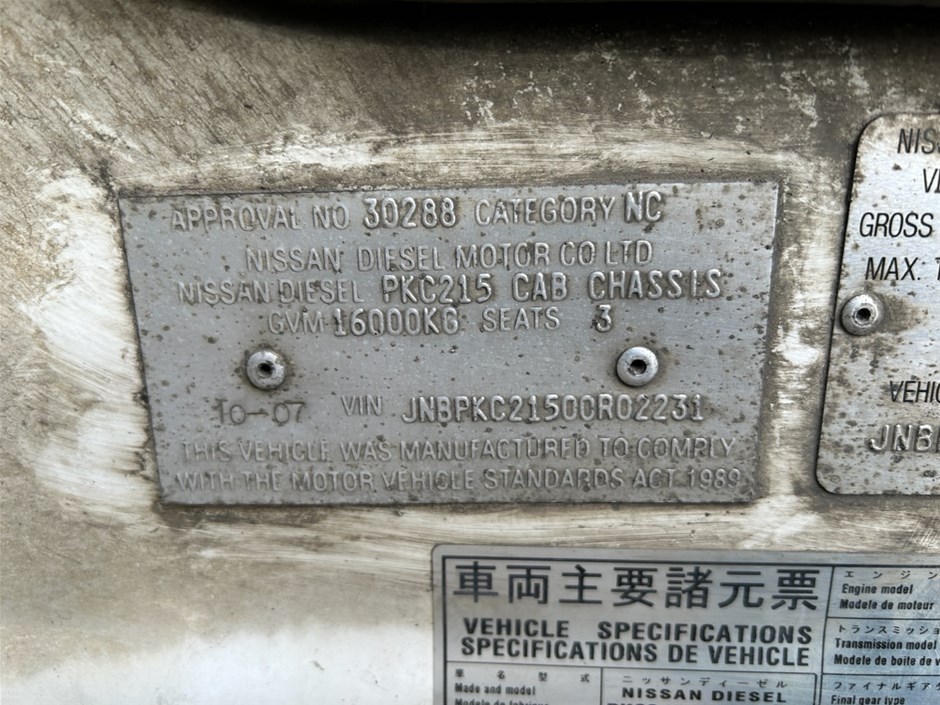 | Part of Sale | 2007 Nissan Diesel UD (6 x 2) Curtainsider Rigid Truck - Vic | ||||||||||