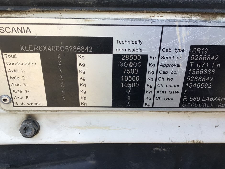 | Part of Sale | 2012 Scania R560 6 x 4 Prime Mover Truck | ||||||||||