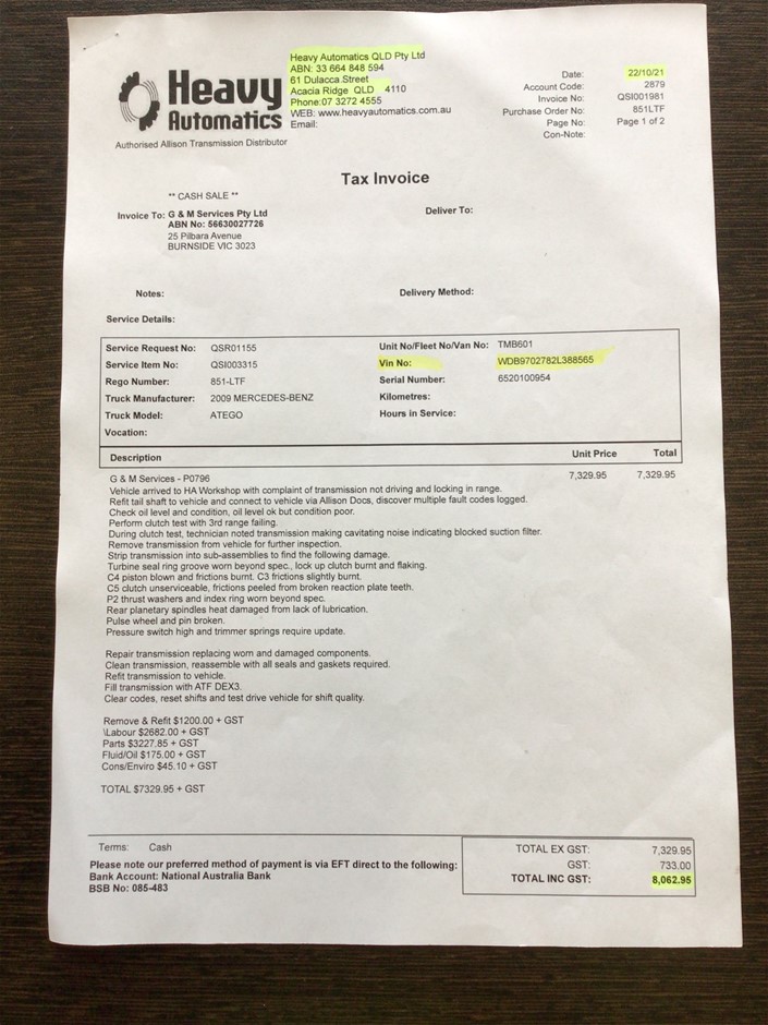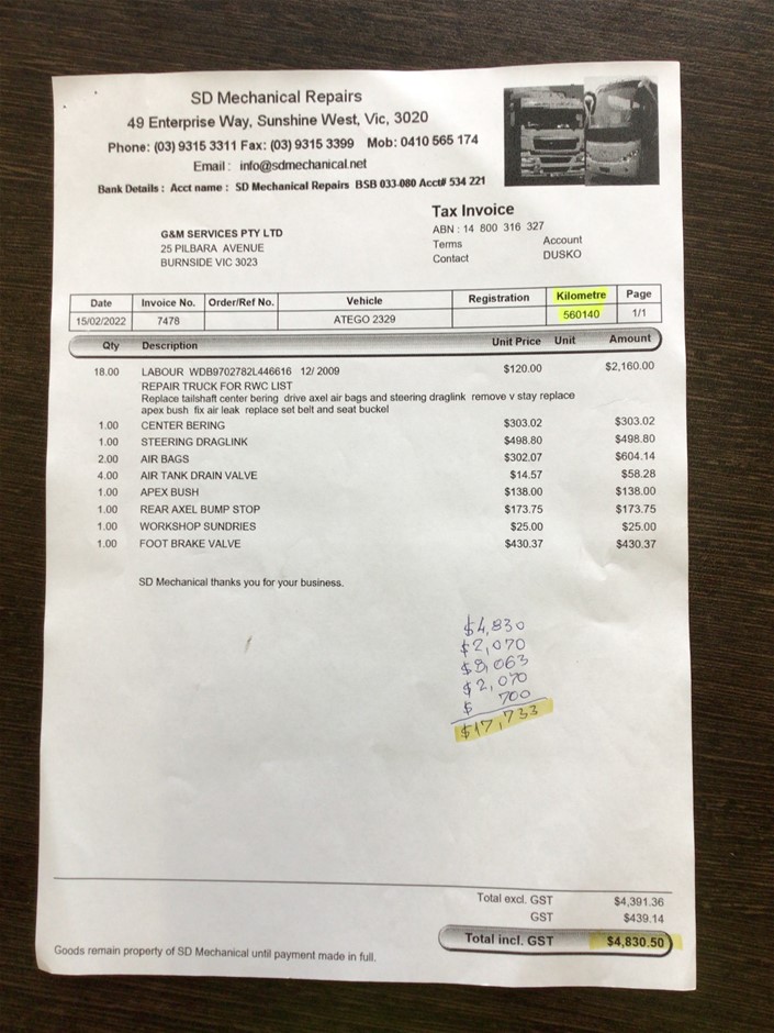 | Part of Sale | 2009 Mercedes Benz Atego 2329 6 x 2 Curtainsider Rigid Truck | ||||||||||
