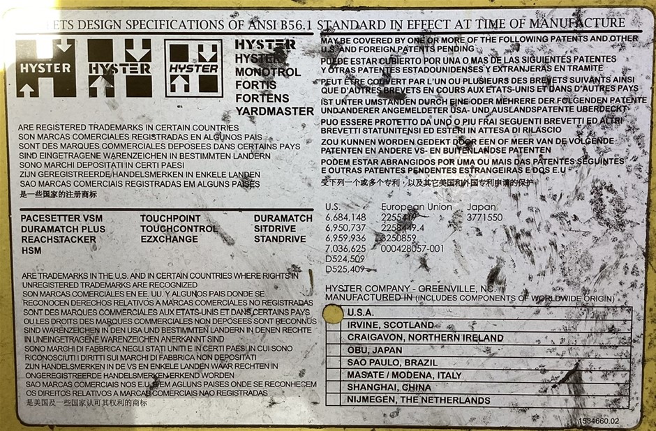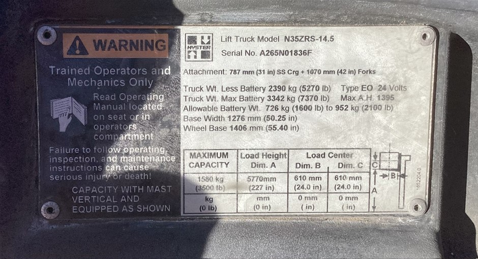 | Part of Sale | Hyster N35ZRS-14.5 Side Loader Forklift | ||||||||||