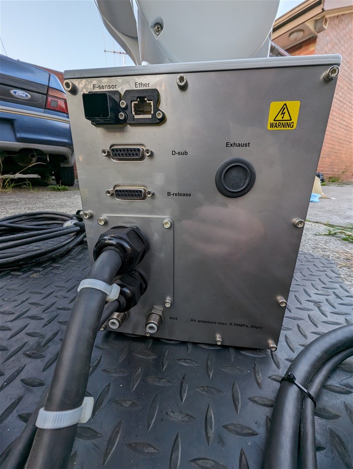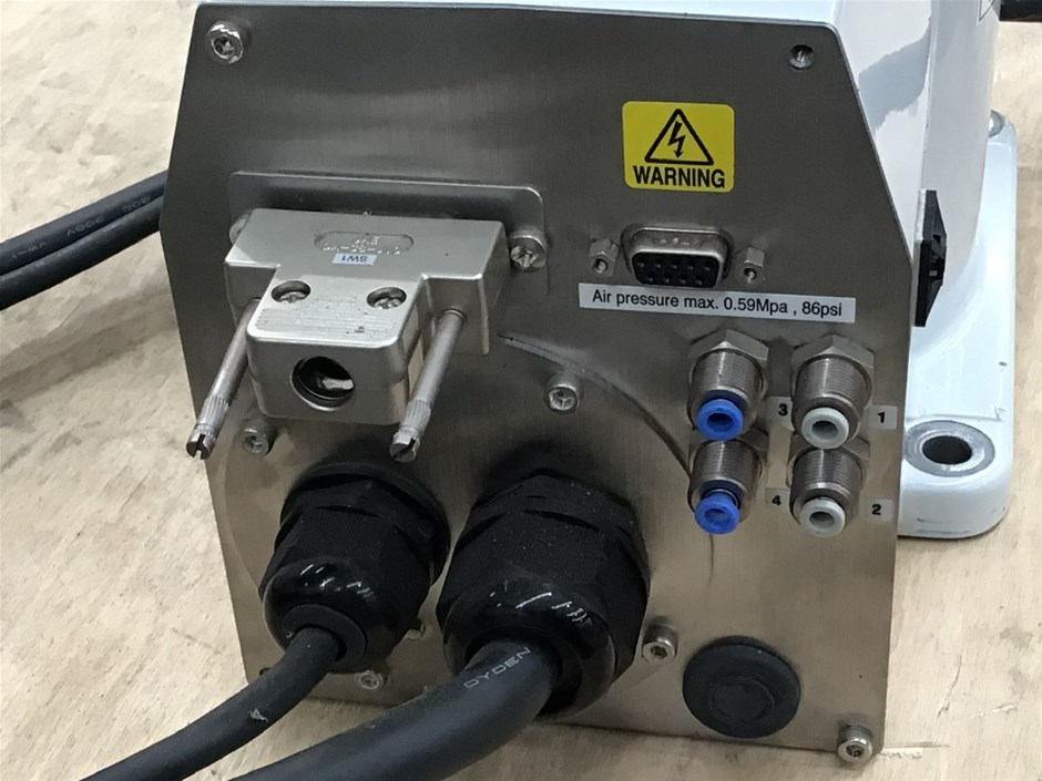 Set comes with one master controller and one slave drive unit for the second arm - must be operated as a pair. Comes with required power and communication cables, spare DB connectors, and emergency stop button.