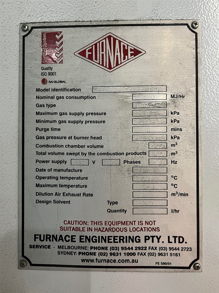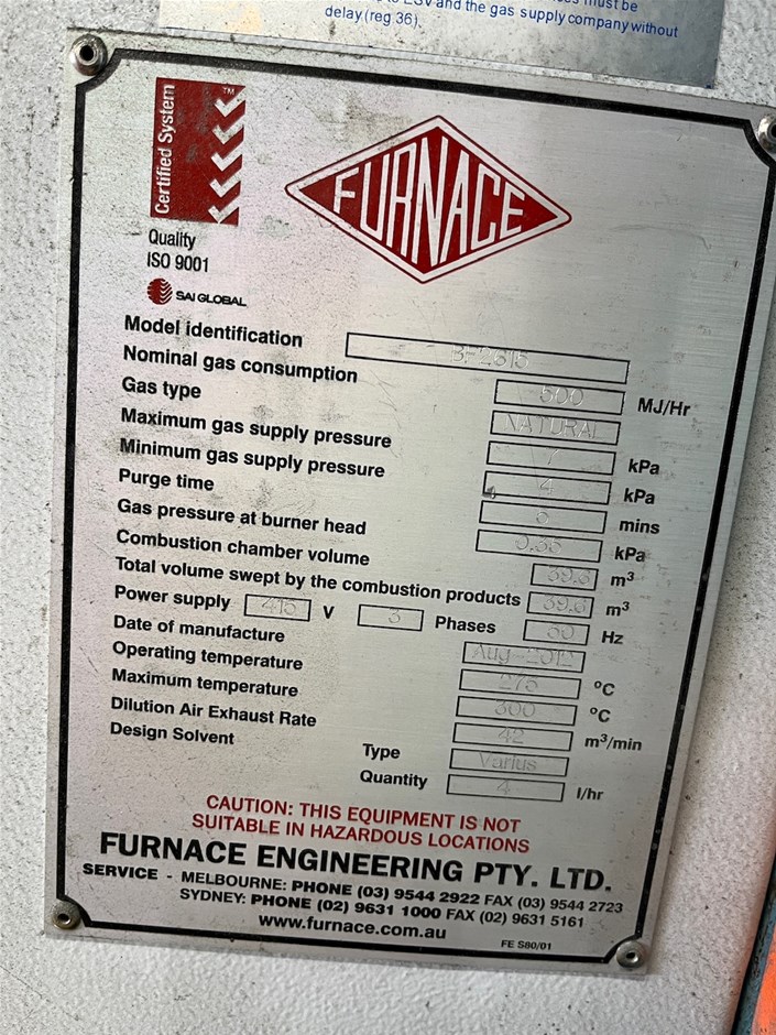 • Zinc curing oven, gas fired, Temperature control system