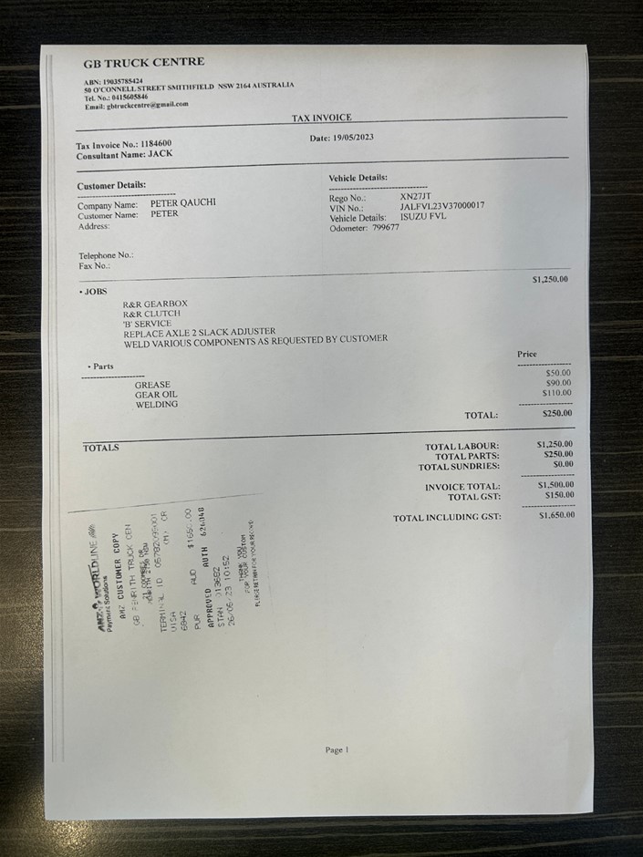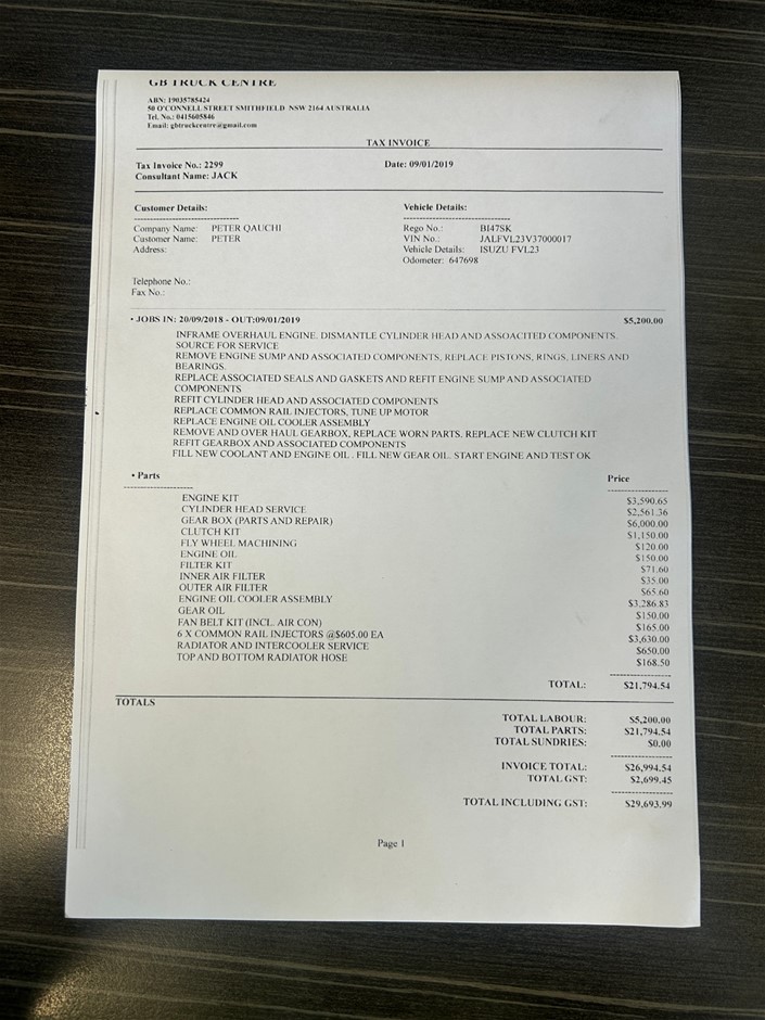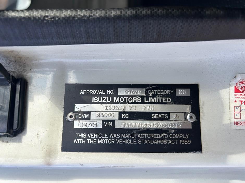 | Part of Sale | 2004 Isuzu FVL 6 x 2 Curtainsider Rigid Truck | ||||||||||