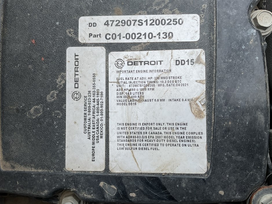 • Engine Type : Detroit DD15 6 cylinder turbo