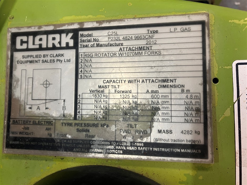 2013 Clark C25L Forklift - 2.5t - 3.0m - LPG