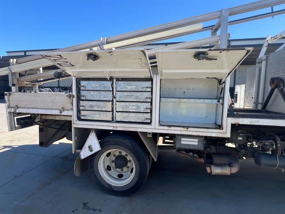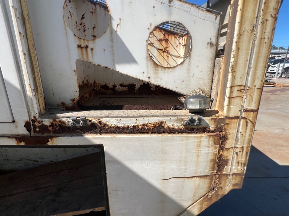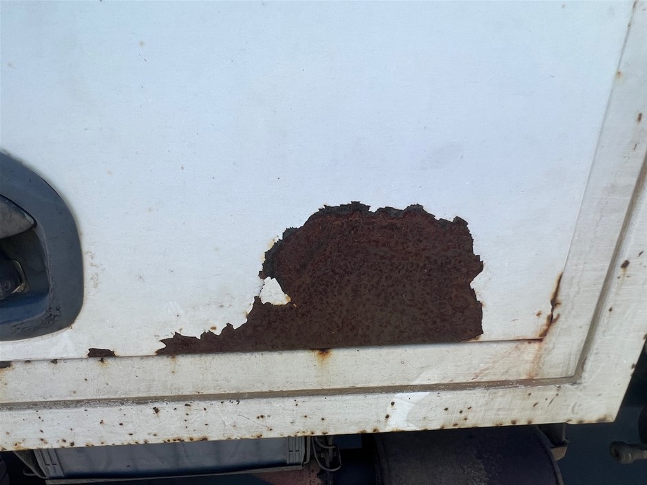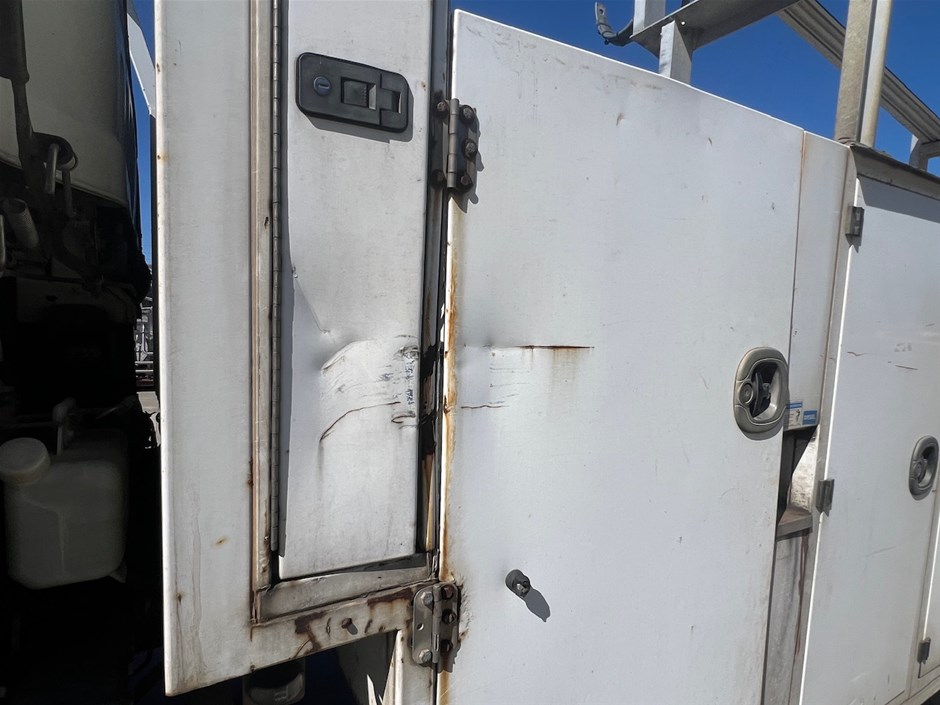 • Damage: Corrosion evident. General wear and tear. Dents, marks and scratches. The driver`s side toolbox door is taped closed, possibly broken.