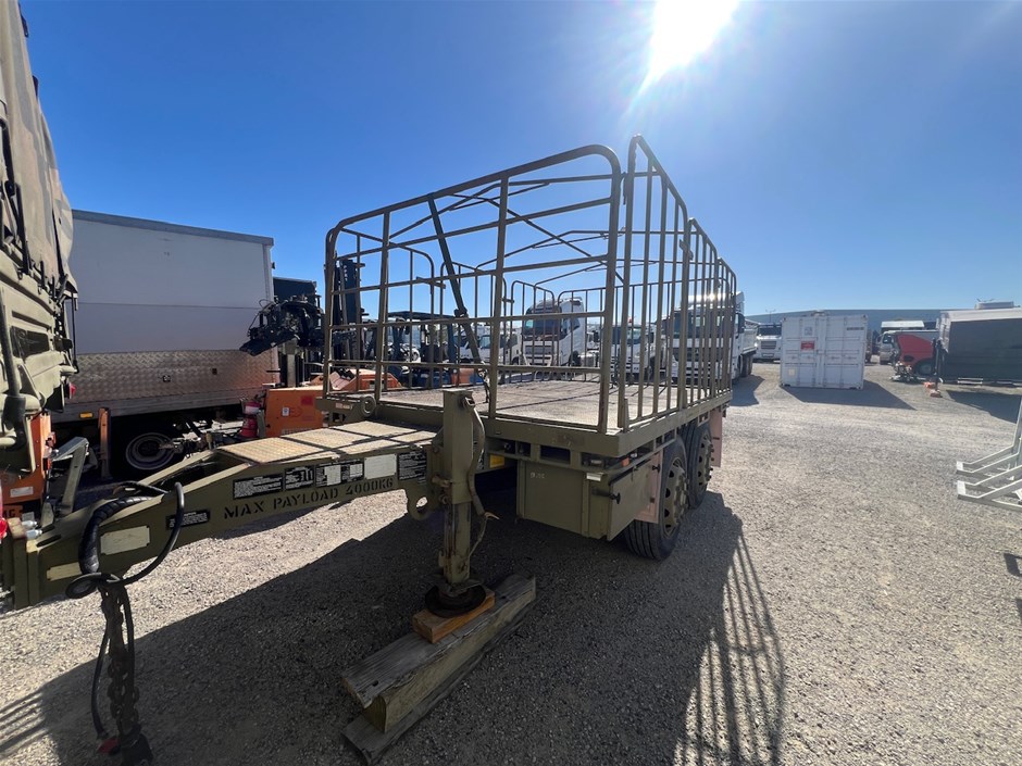 1985 Mercedes Benz Unimog 4 x 4 Tray Body Truck & 2003 Haulmark 2P-10 Flat Top Trailer
