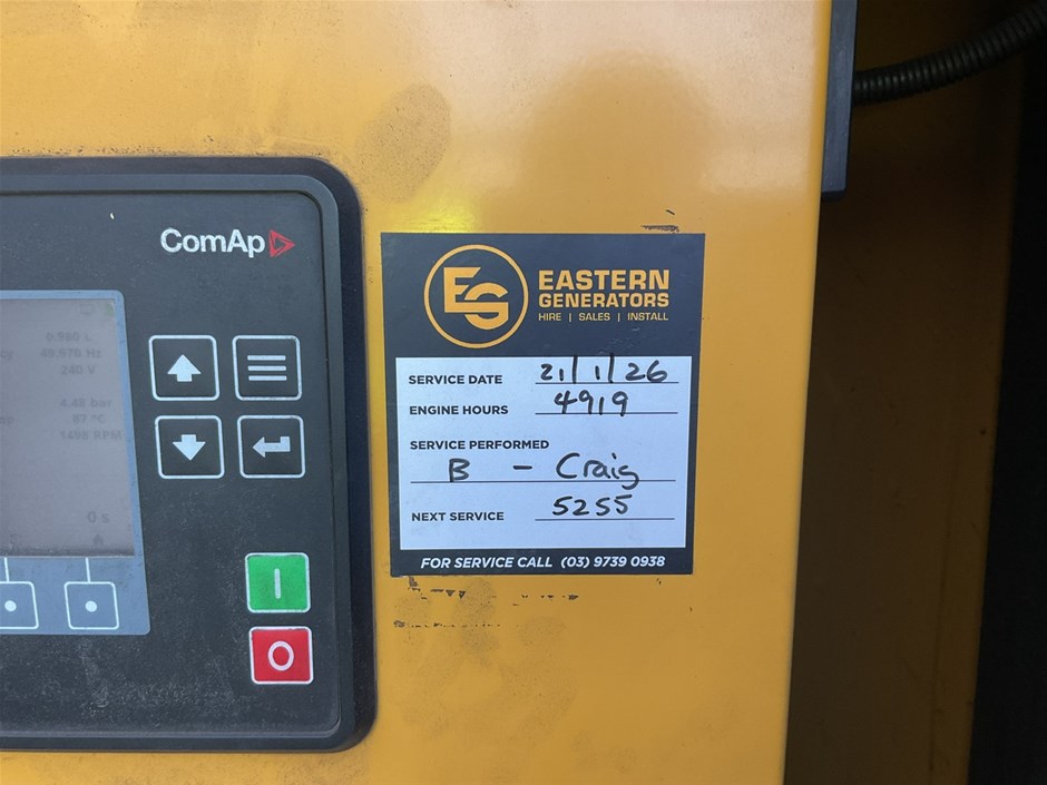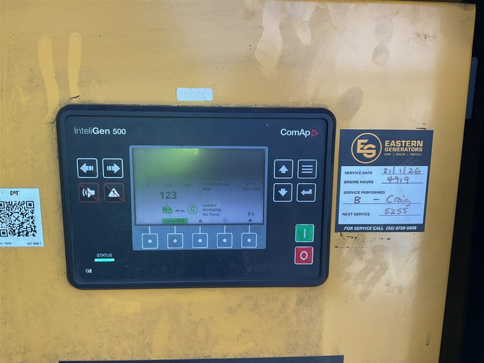 • Comments: Includes C15 High Ambient Acoustic Enclosure 1.6 mm galvanised steel and InteliGen 500 control module. Hours showing is the date of the service - 21 January 2026.