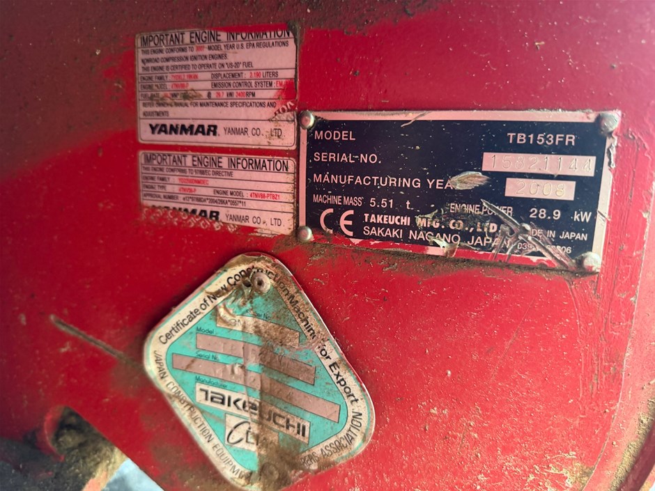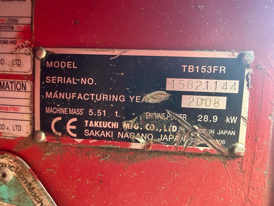 Part of Sale No Reserve Takeuchi TB153FR Hydraulic Excavator