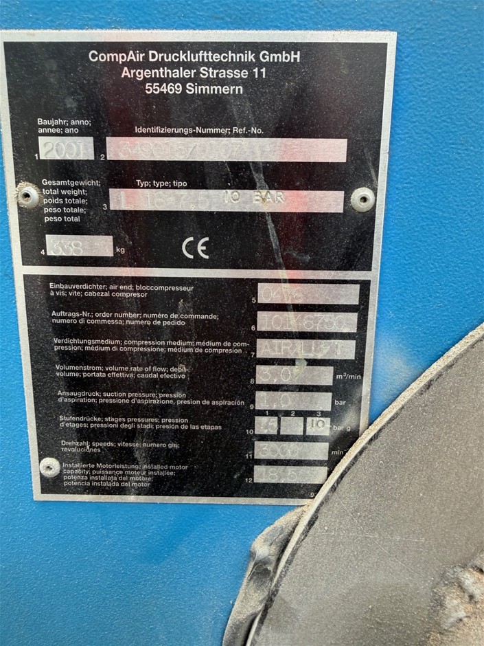 • Engine Make: CompAir L180 7.5 18.5KW Industrial Screw Compressor