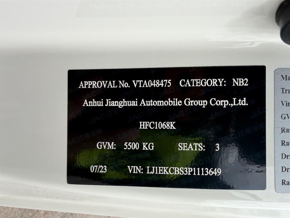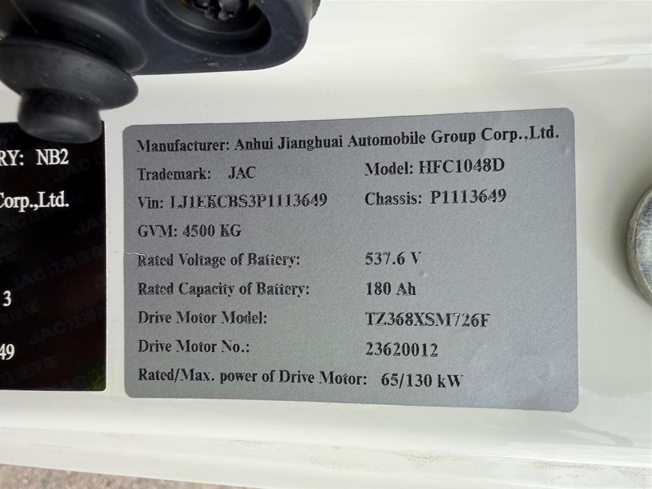 Part of Sale 2023 JAC HFC1048D 4 x 2 Cab Chassis Electric Truck