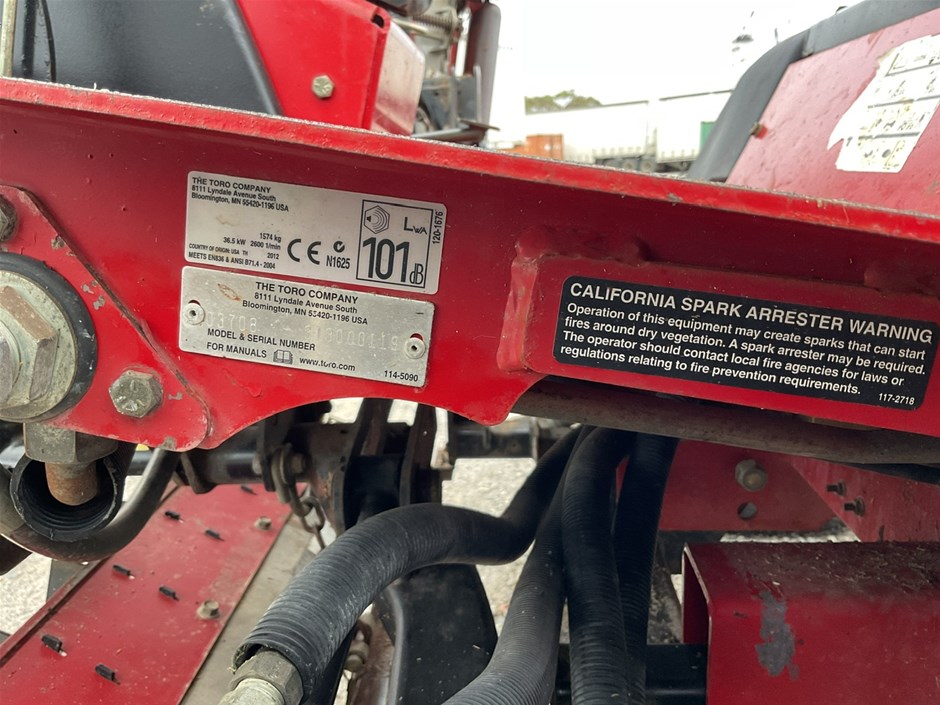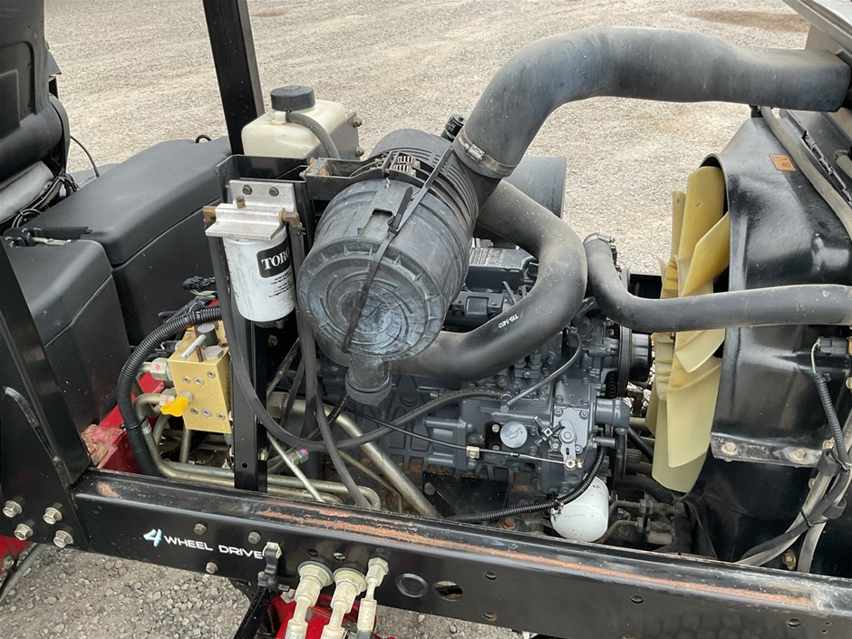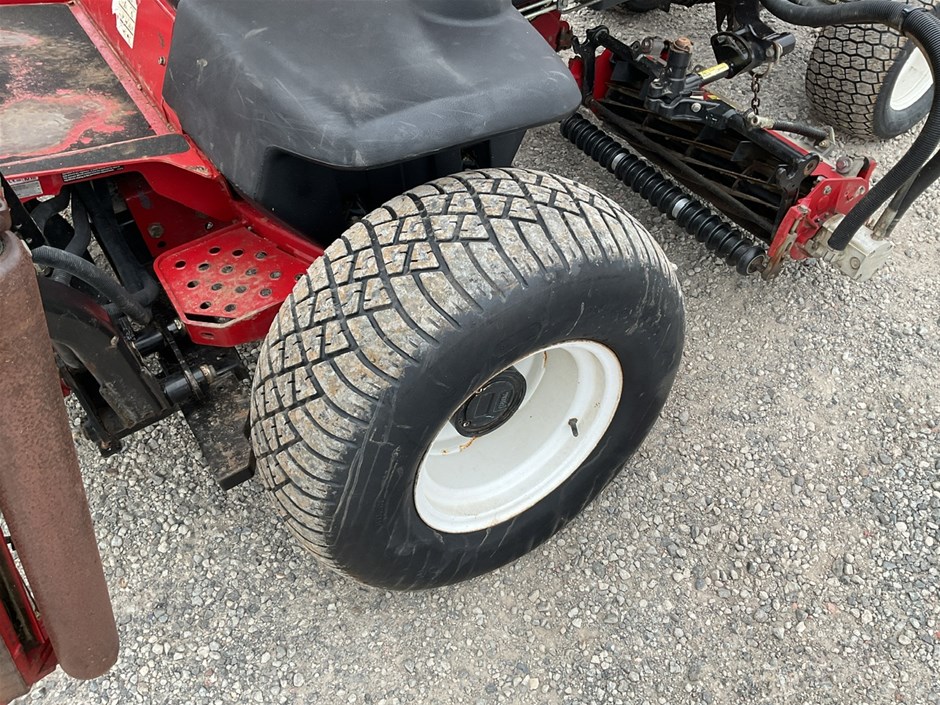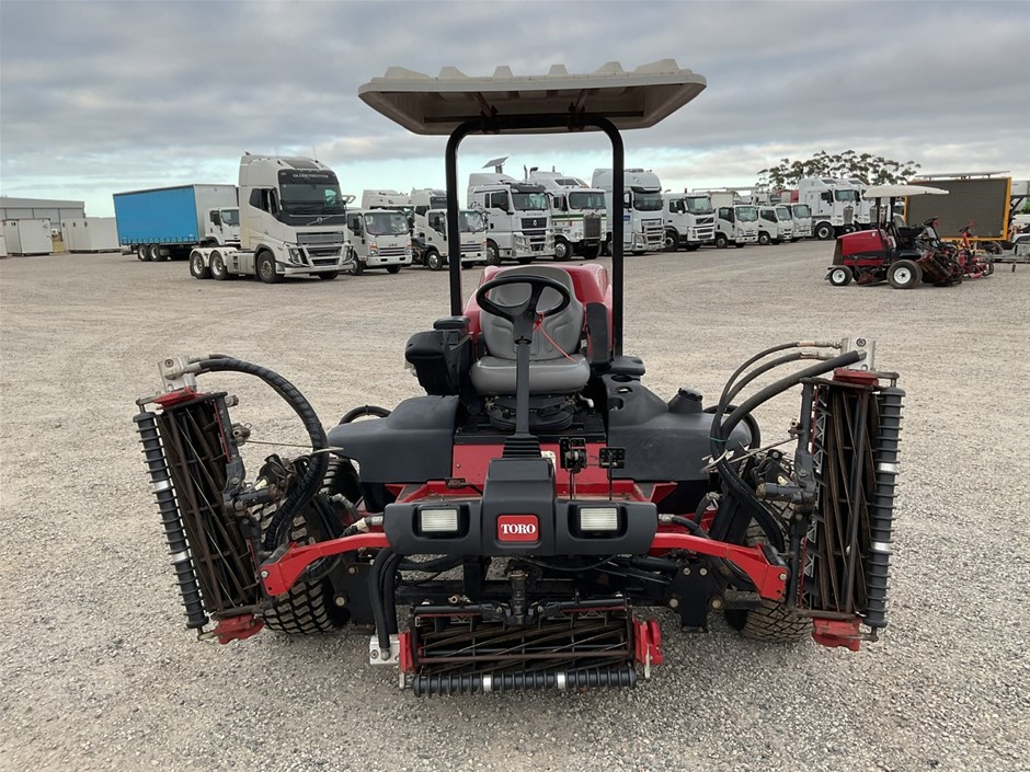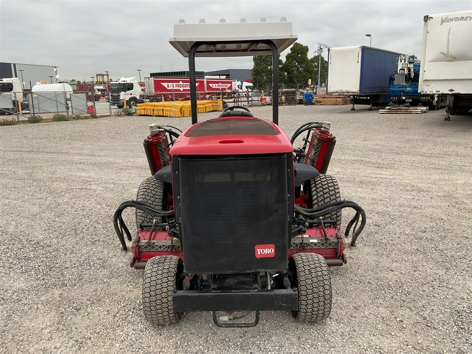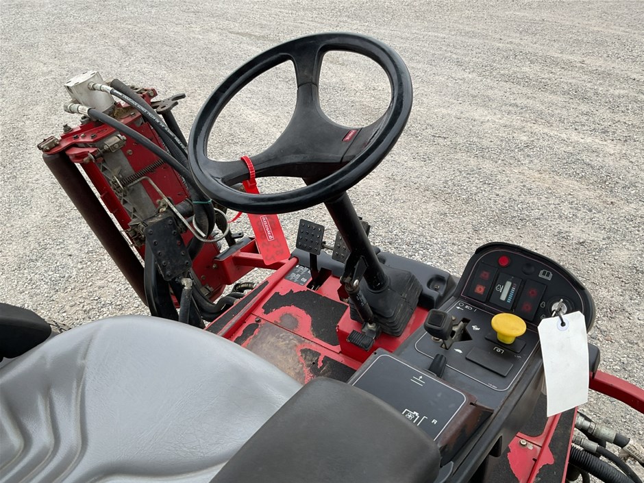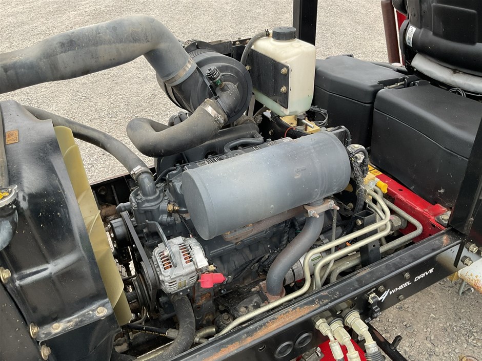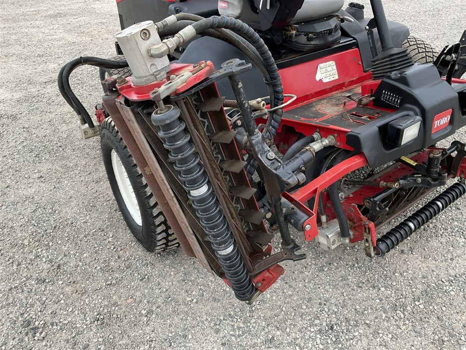• 2012 Toro Reelmaste 7000D Ride-on Mower . 4WD . s/n 313000119. 4 cylinder diesel engine 36.5 kw .4329 hrs showing.Rops. Cutting width 3200 mm.
