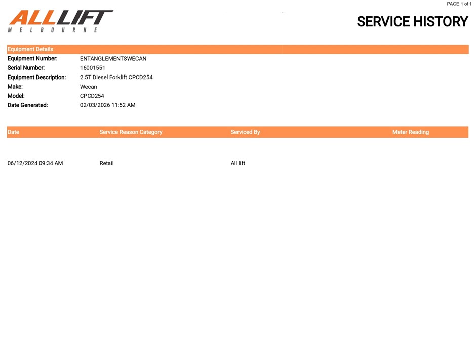 | Part of Sale | WeCan CPCD25Y Counterbalance All Terrain Forklift | ||||||||||