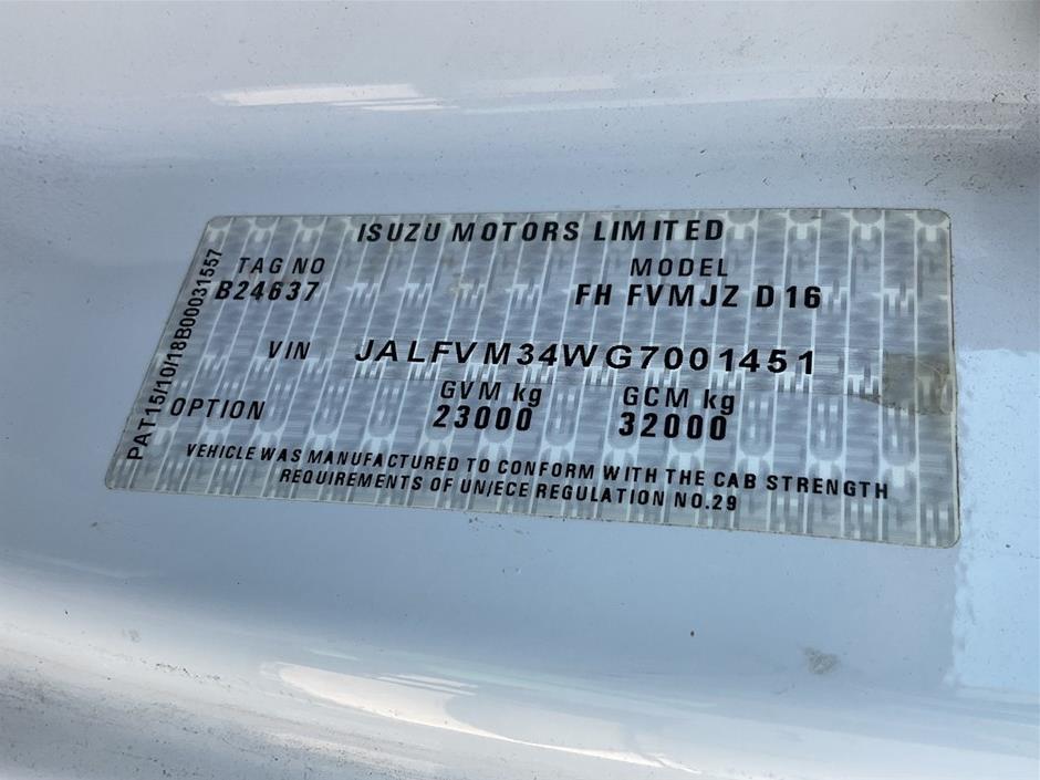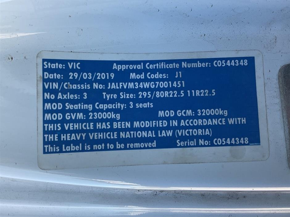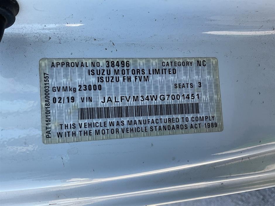 | Part of Sale | 2019 Isuzu FVM 6 x 2 Tray Body Truck | ||||||||||
