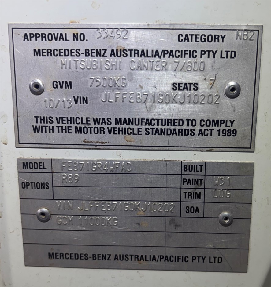 Part of Sale 2013 Mitsubishi Canter Fuso 815 4 x 2 Tilt Tray/Tipper Truck