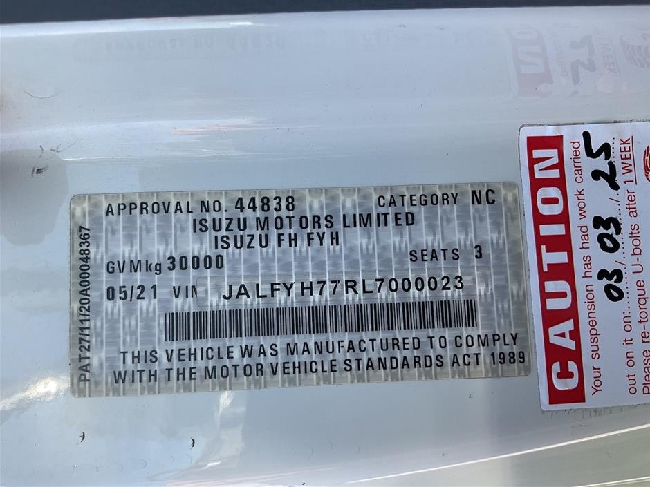 2021 Isuzu FYJ 8 x 4 Curtainsider Rigid Truck