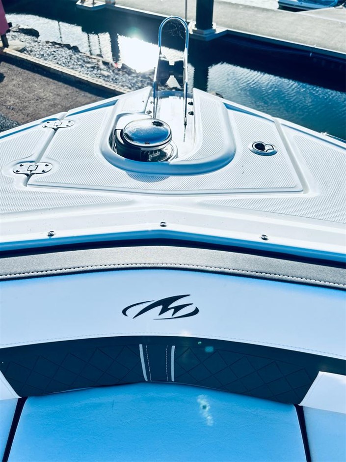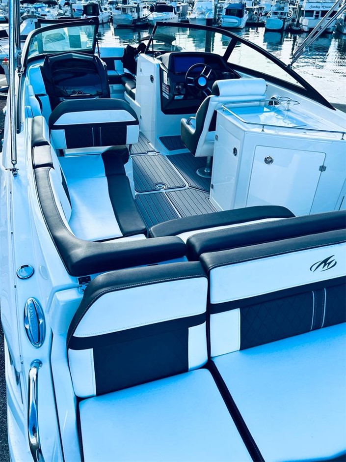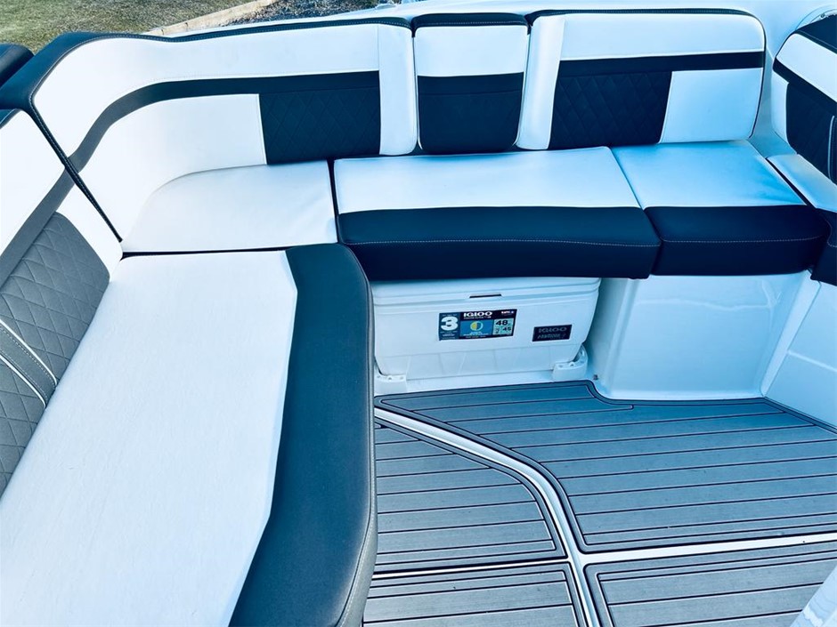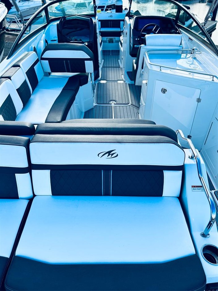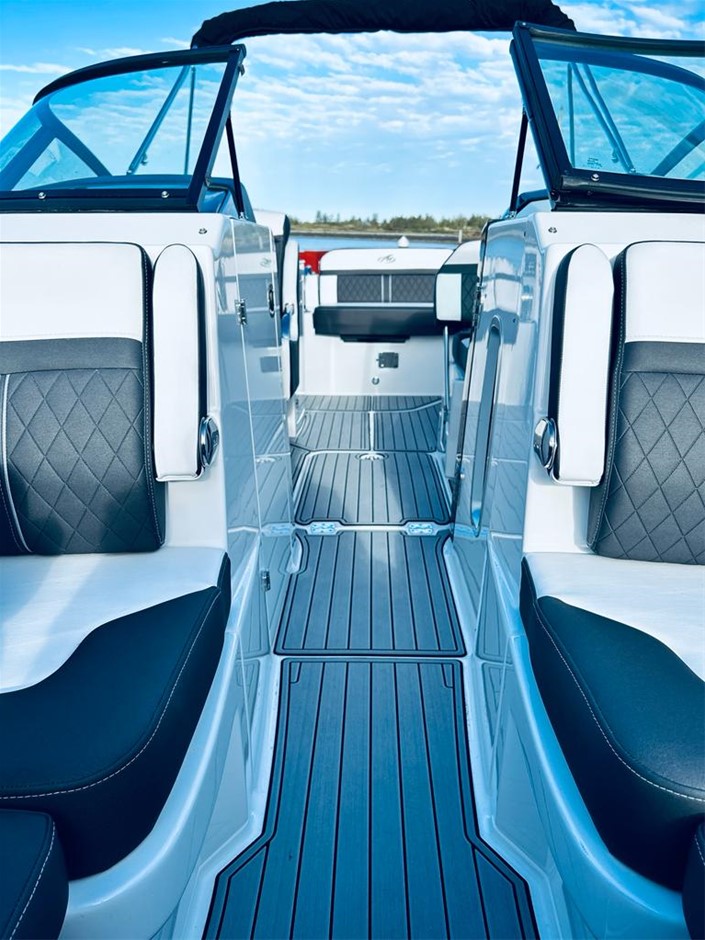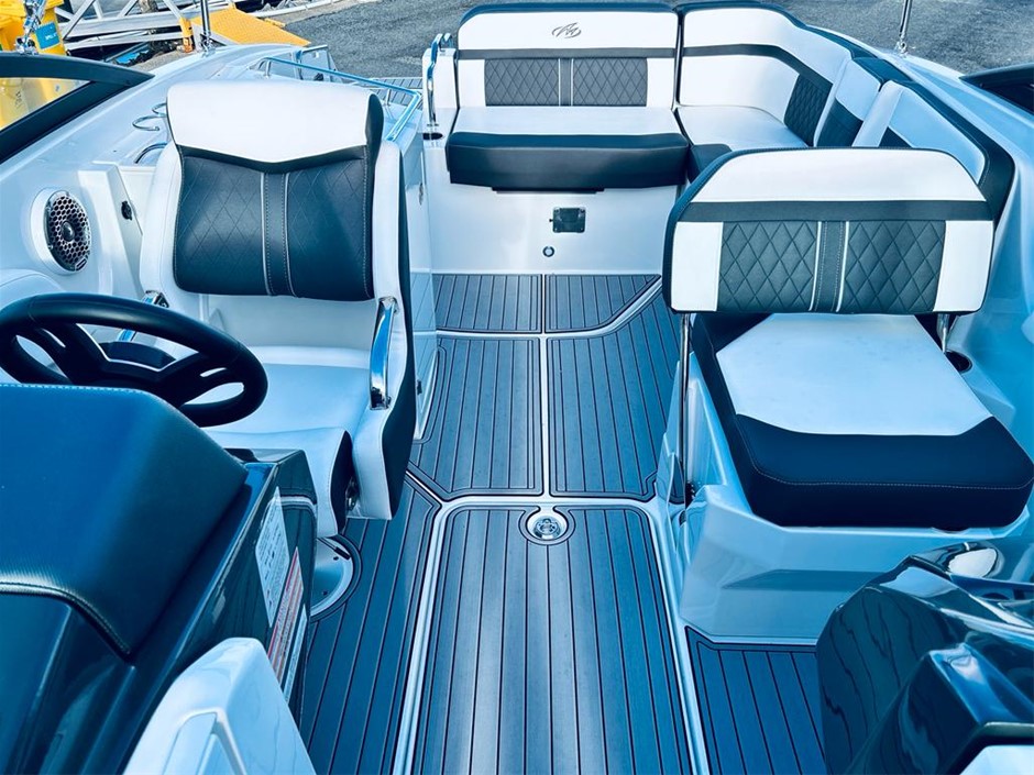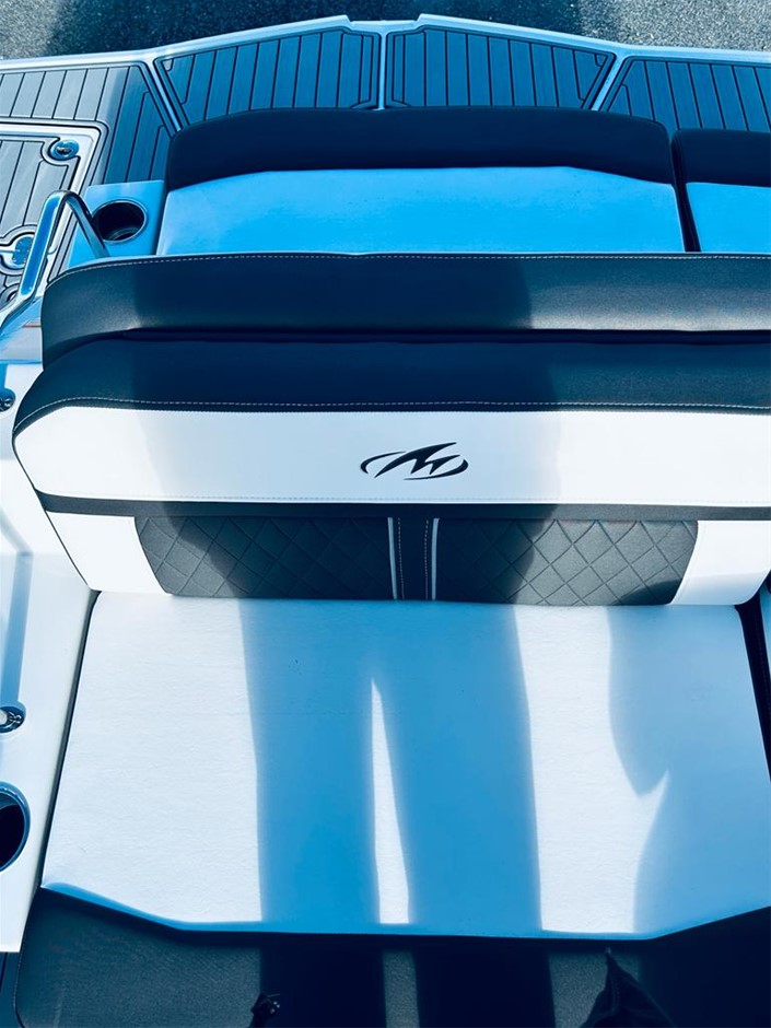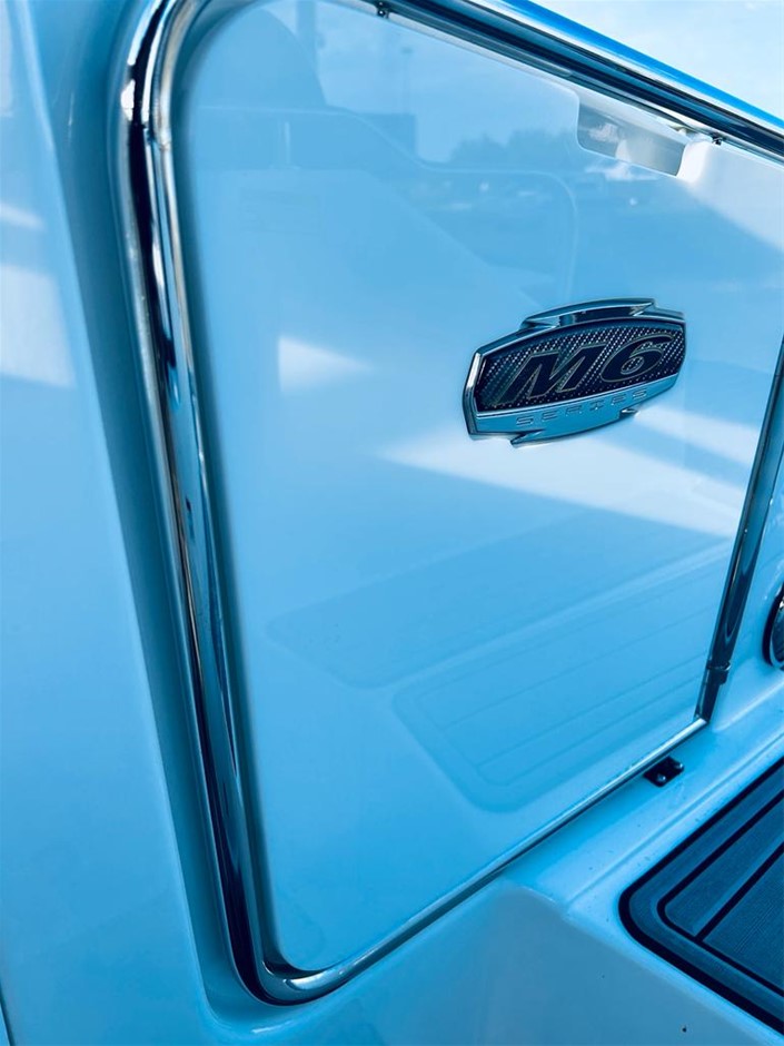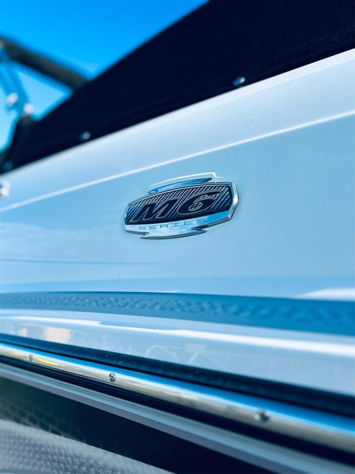 The M6 has everything you’ll need to enjoy a full day of cruising, skiing, wakeboarding and tubing. Featuring spacious seating and storage options, a head compartment, two recessed and telescoping boarding ladders located in the bow and stern, and a Fusion satellite ready AM/FM stereo, you`ll have everything you need to enjoy your time out on the water. With the standard signature graphics and coloured hull and deck, you’re sure to have one of the sharpest boats on the water. The M6 is style, luxury and performance personified!