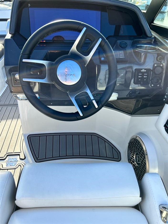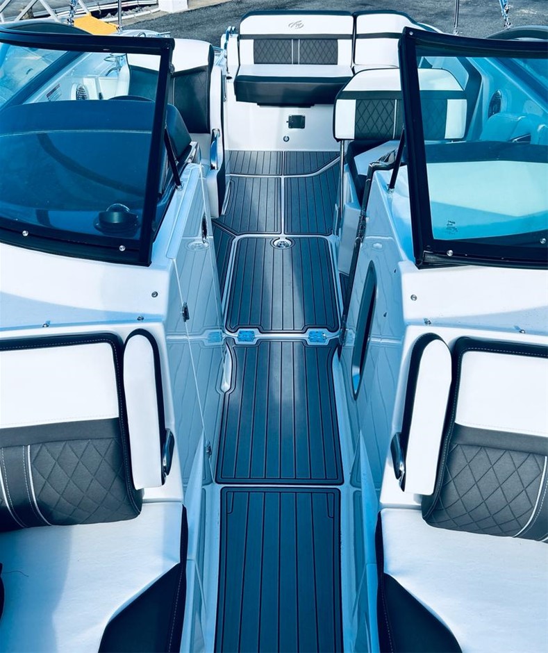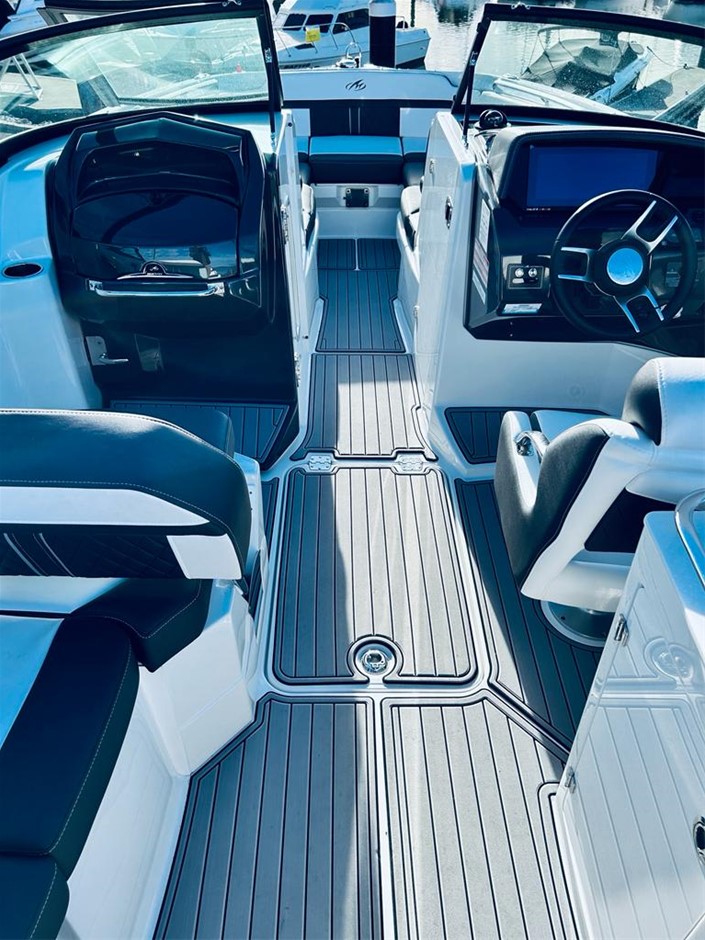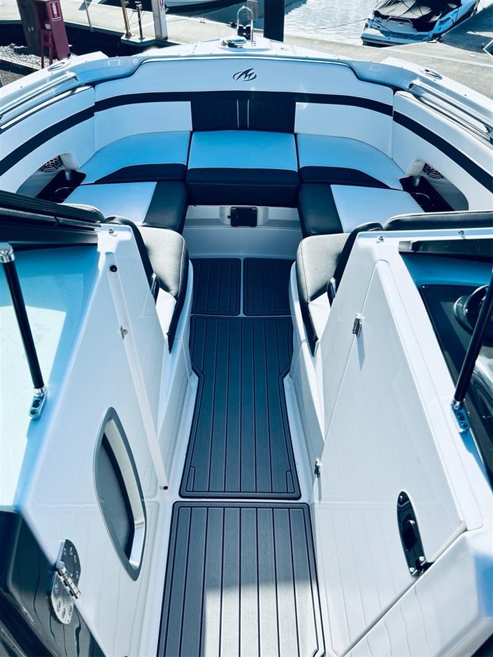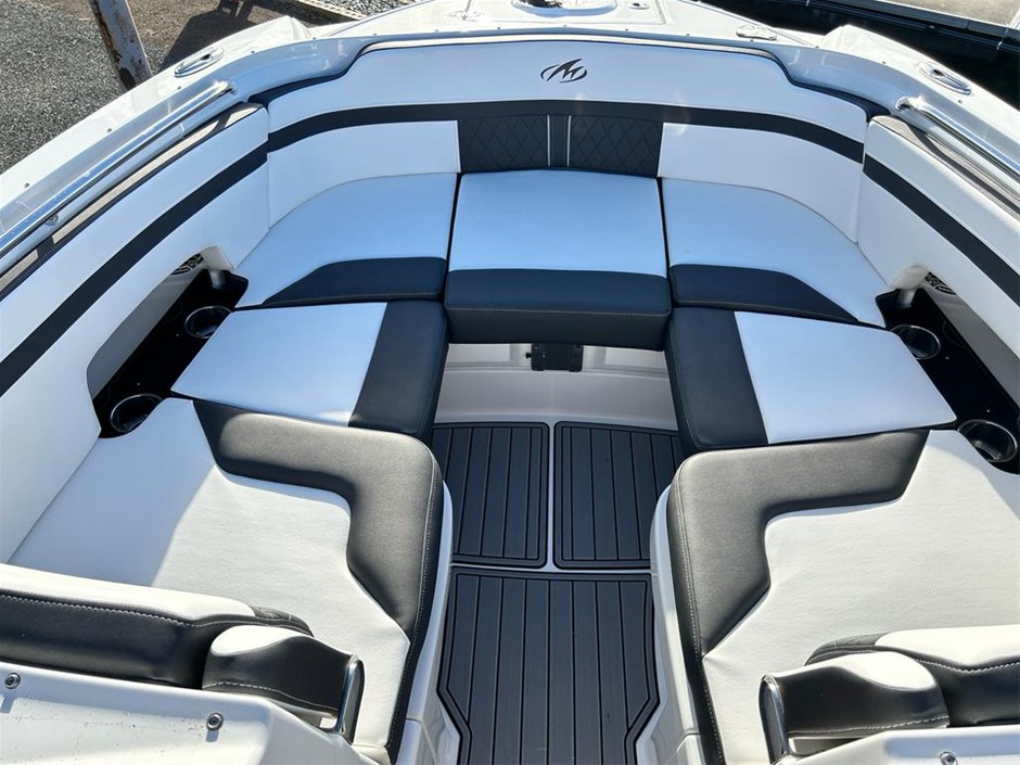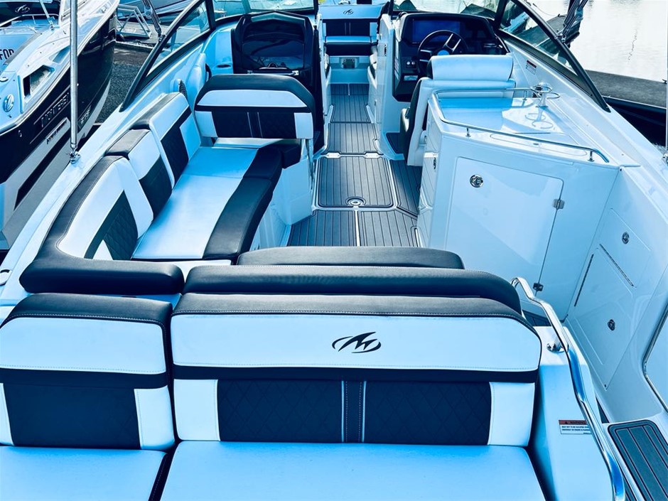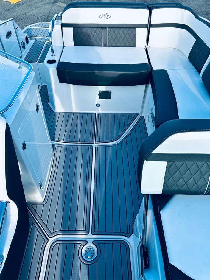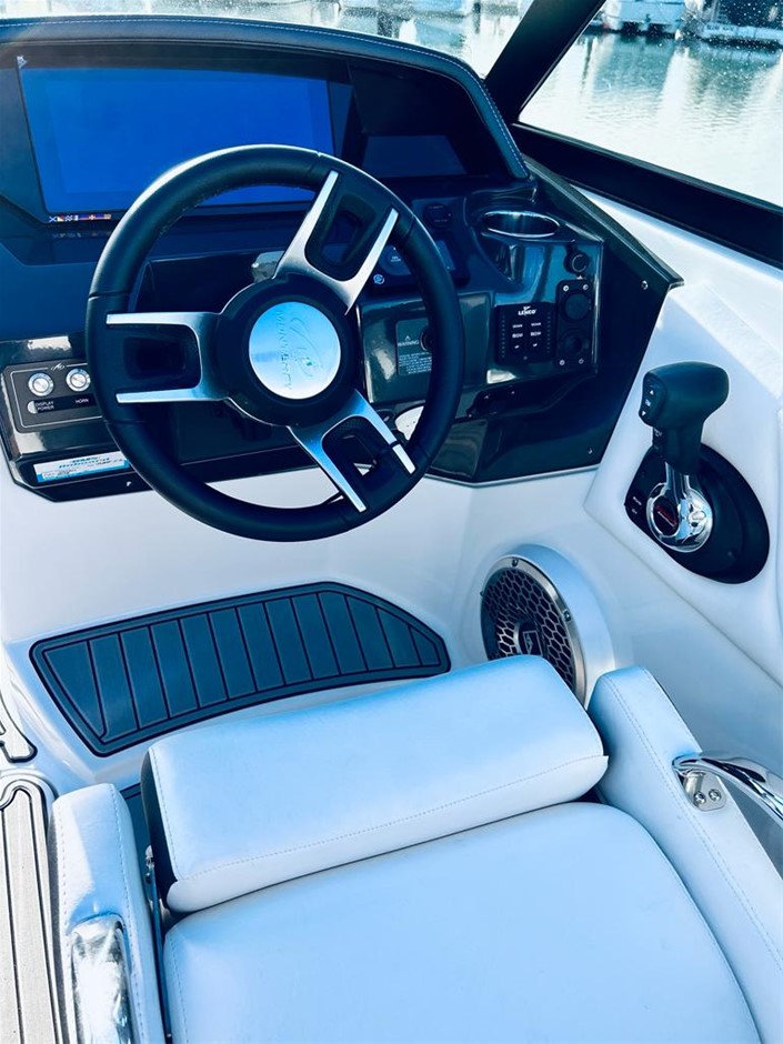 The M6 has everything you’ll need to enjoy a full day of cruising, skiing, wakeboarding and tubing. Featuring spacious seating and storage options, a head compartment, two recessed and telescoping boarding ladders located in the bow and stern, and a Fusion satellite ready AM/FM stereo, you`ll have everything you need to enjoy your time out on the water. With the standard signature graphics and coloured hull and deck, you’re sure to have one of the sharpest boats on the water. The M6 is style, luxury and performance personified!
