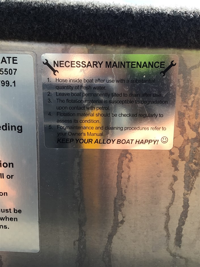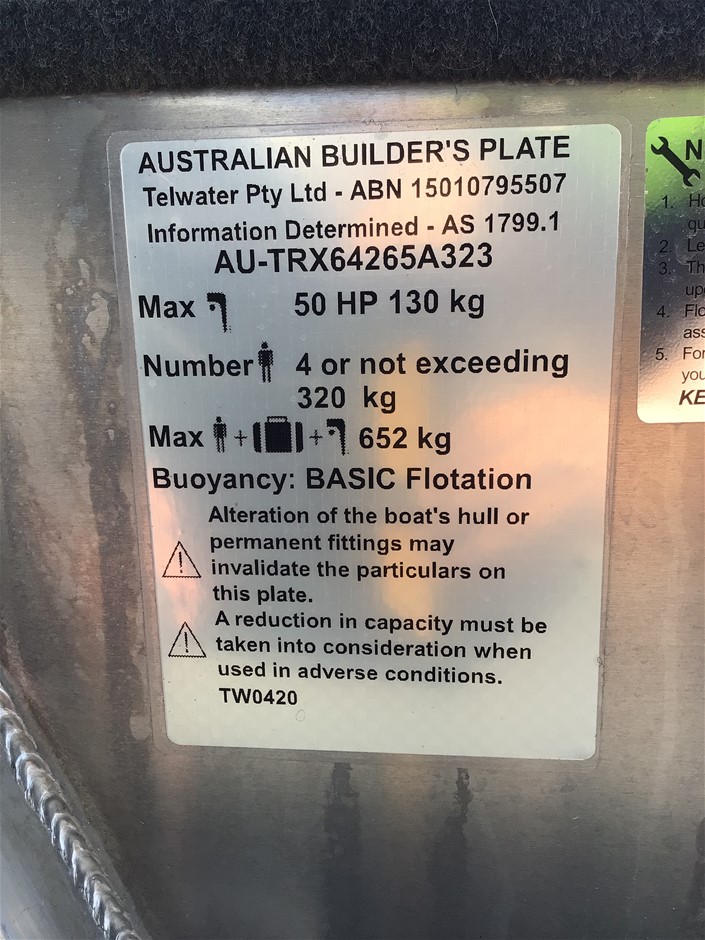 Please Note:The data form (if attached below the description in the lot) is a guide only. The assets are not driven or tested and description is based on walk around at the time of listing only. If engine is listed as turning over, this is based on a start-up only at the time of listing and has not been mechanically tested. There may be other damages, mechanical issues or body/hull/interior blemishes that have not been sighted or contained in the description at time of arrival or booking in. Therefore a full inspection is highly recommended prior to bidding.