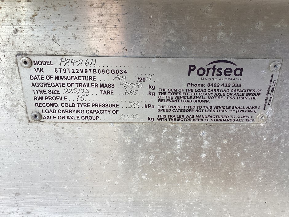 Please Note:The data form (if attached below the description in the lot) is a guide only. The assets are not driven or tested and description is based on walk around at the time of listing only. If engine is listed as turning over, this is based on a start-up only at the time of listing and has not been mechanically tested. There may be other damages, mechanical issues or body/hull/interior blemishes that have not been sighted or contained in the description at time of arrival or booking in. Therefore a full inspection is highly recommended prior to bidding.