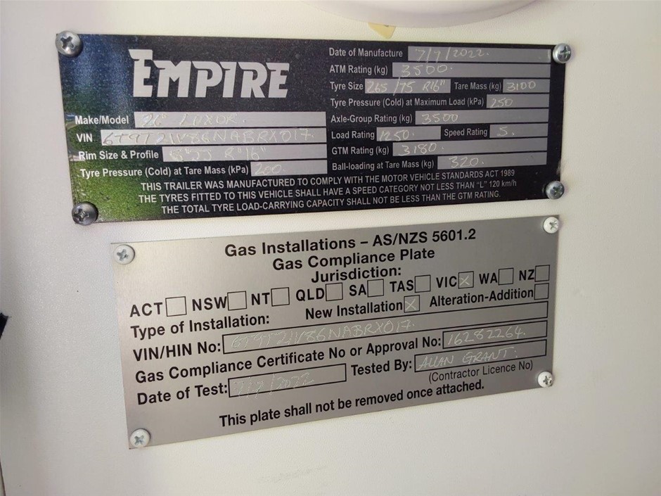 | Part of Sale | 2020 EMPIRE LUXOR CARAVAN | ||||||||||