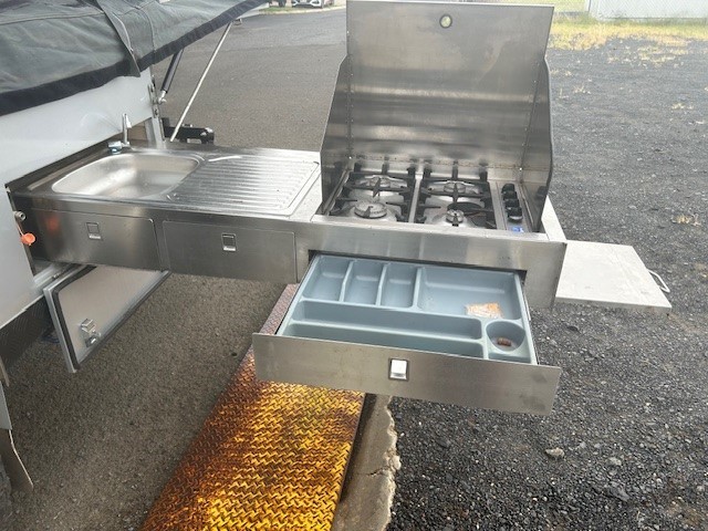 • Pull out kitchen with 4 burner stove