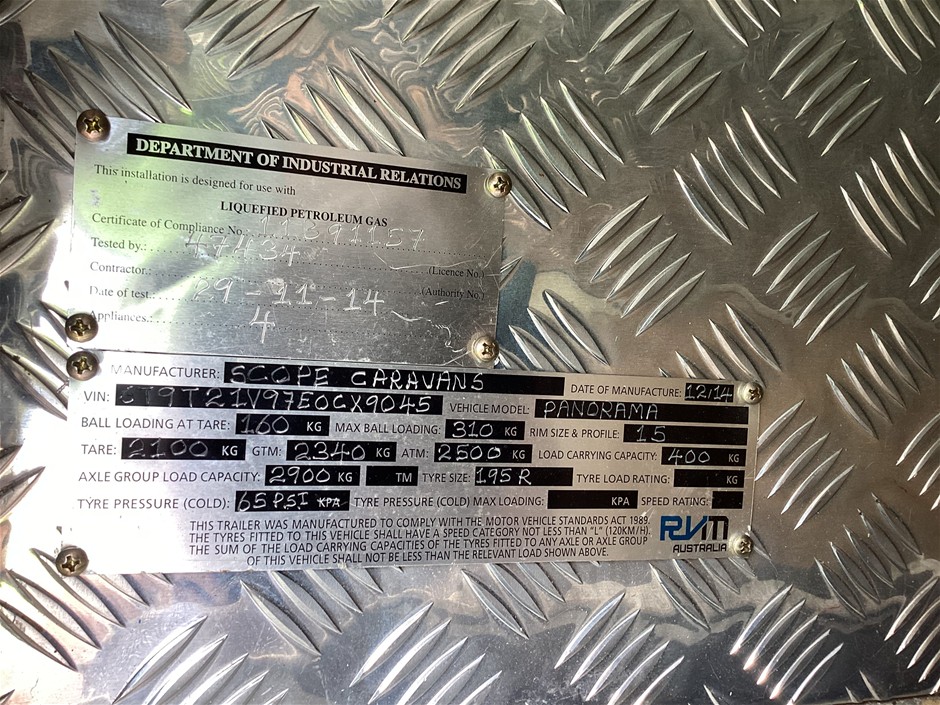 | Part of Sale | 2014 Scope Panorama Caravan | ||||||||||||