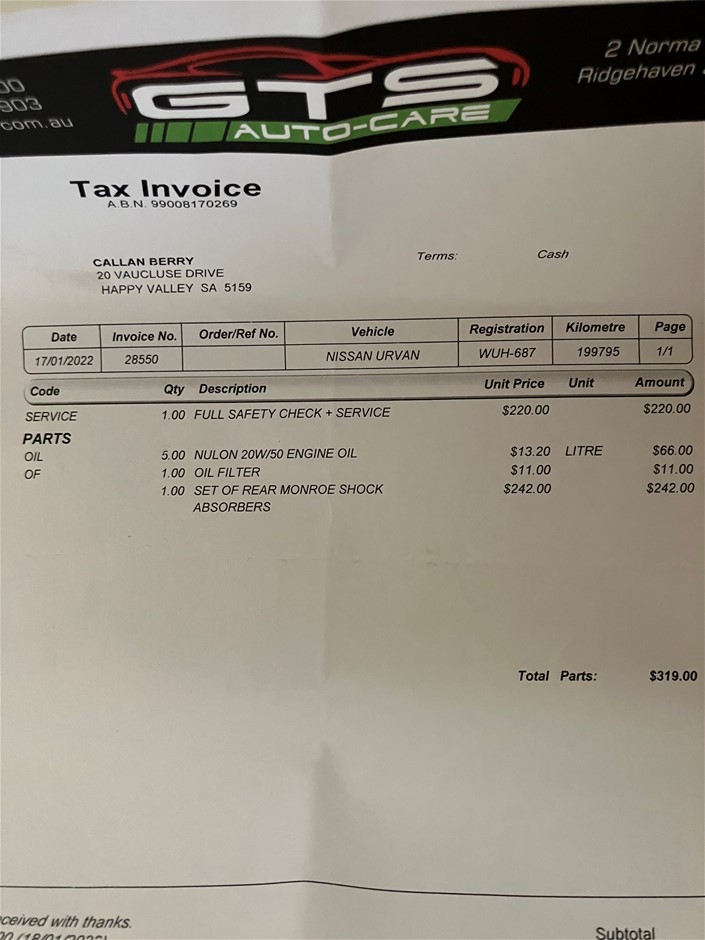 | Part of Sale | 1991 Nissan Urvan Safari | ||||||||||||