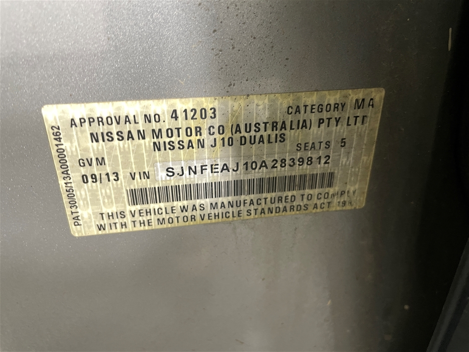 2013 Nissan Dualis TS J10 III Turbo Diesel Manual Wagon