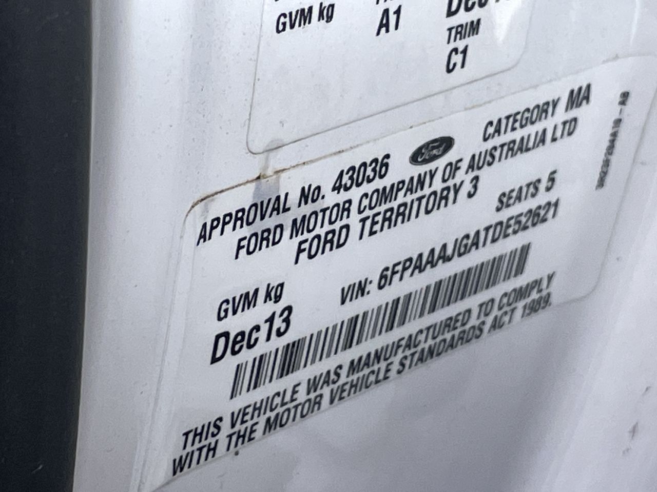| Part of Sale | 2013 Ford Territory TX SZ | ||||||||||||||