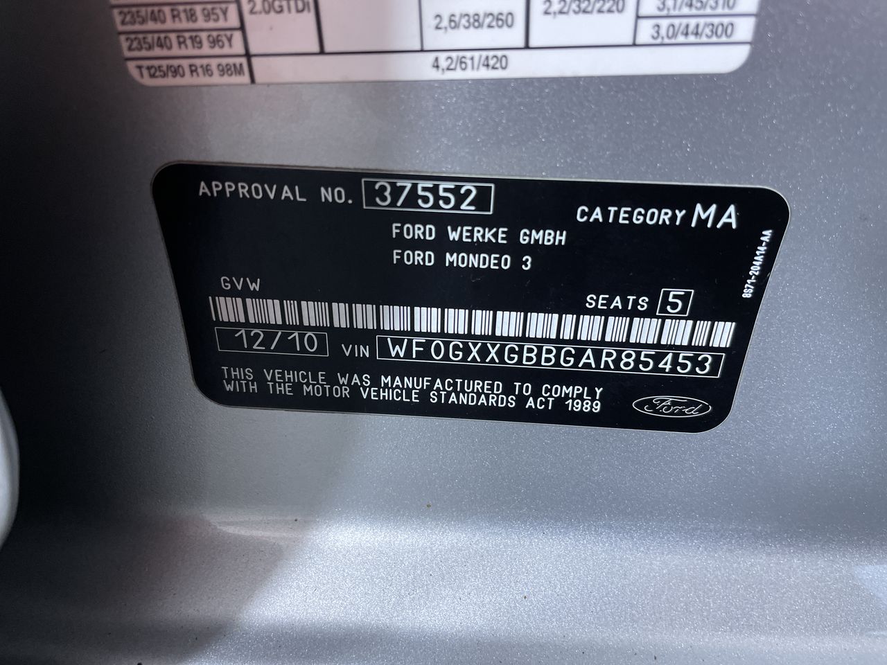 (SN:WF0GXXGBBGAR85453) (94441-53)