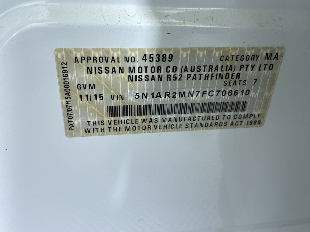 2015 Nissan Pathfinder ST R52 CVT 7 Seats Wagon