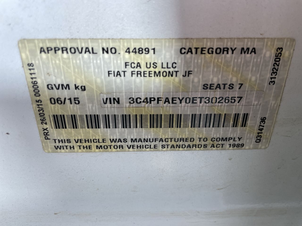 2014 Fiat Freemont Urban Turbo Diesel Manual 7 Seats Wagon