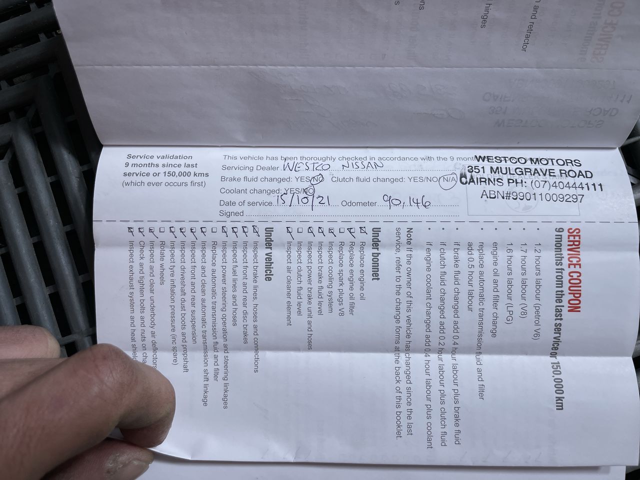 Have we checked if there is a Written Off Vehicle Record or finance owing on the vehicle?