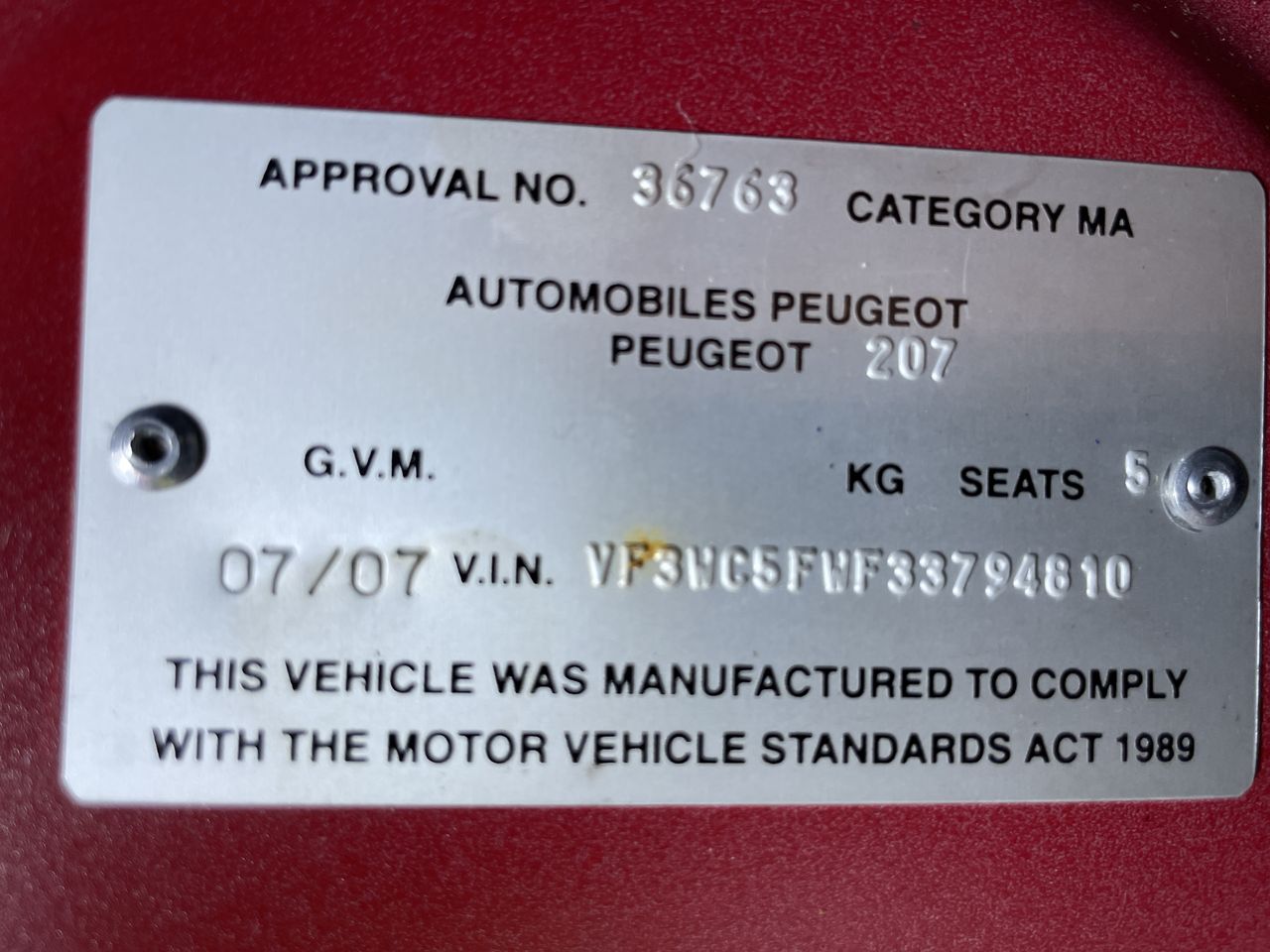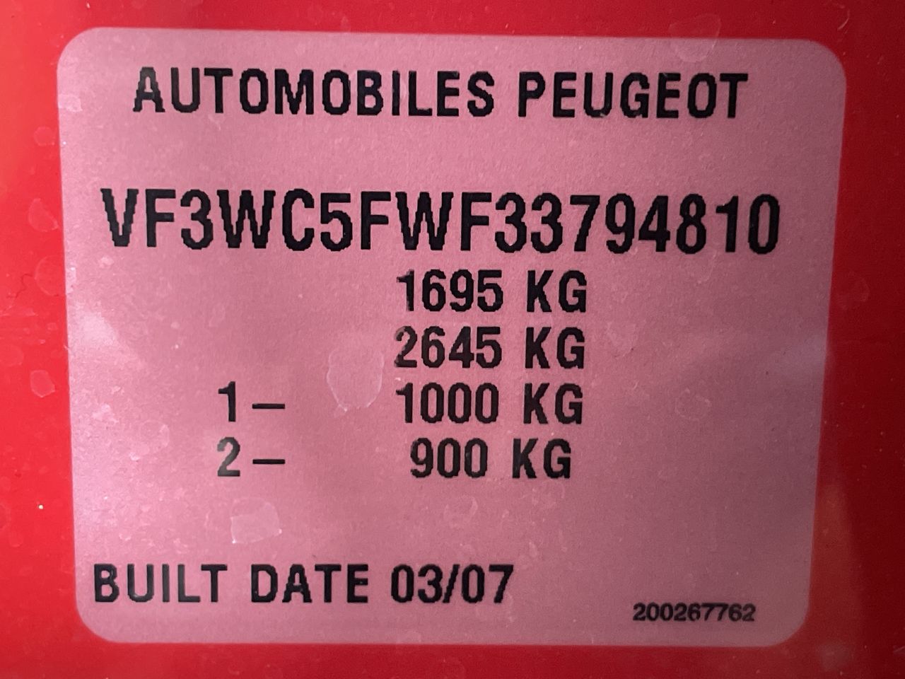 • VIN: VF3WC5FWF33794810