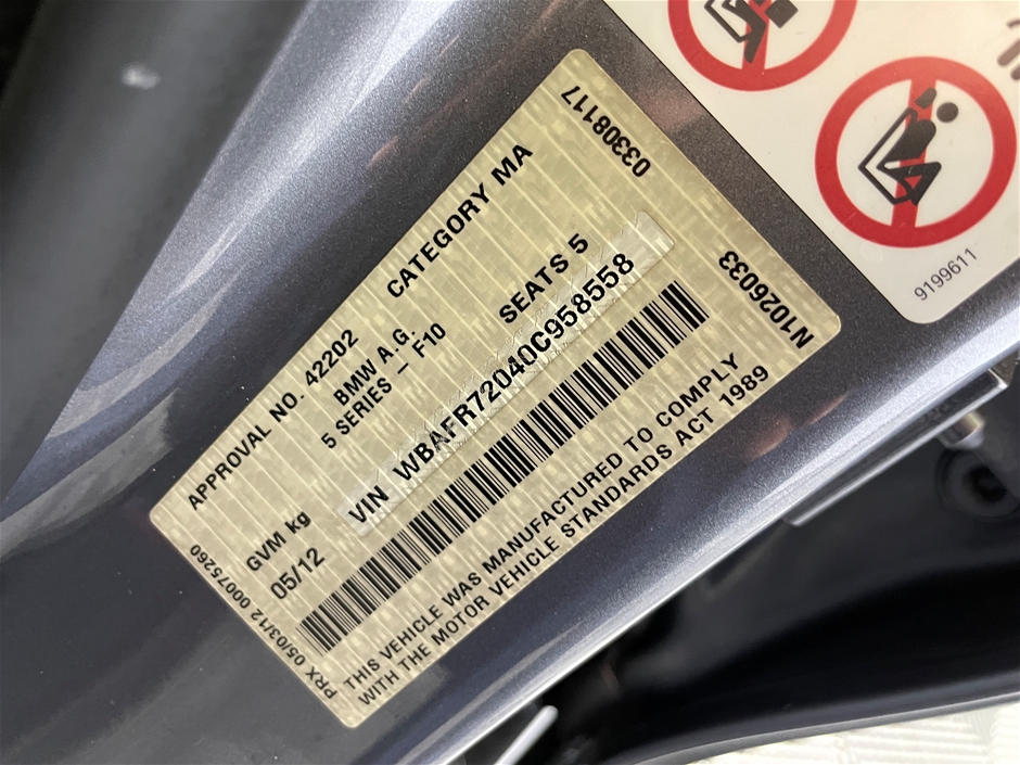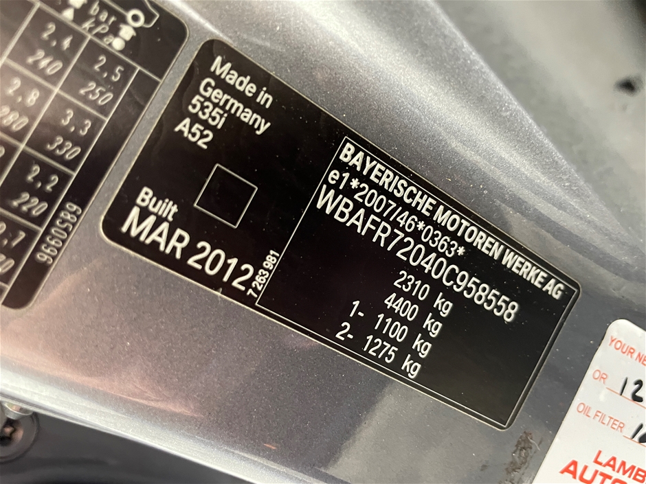 2012 BMW 5 Series 535i F10 Automatic - 8 Speed Sedan