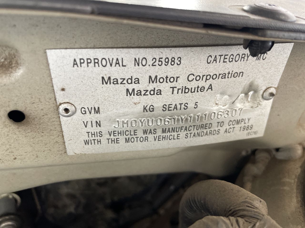 • VIN: JM0YU061Y11106307