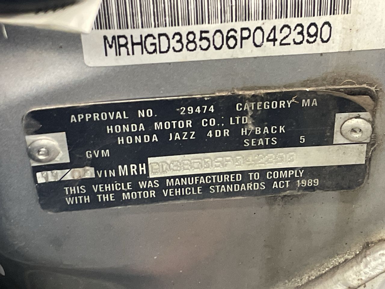 • VIN: MRHGD38506P042390