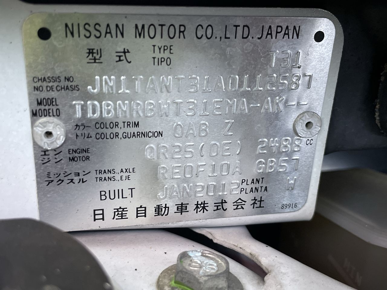 (SN:JN1TANT31A0112587) (120637-60)